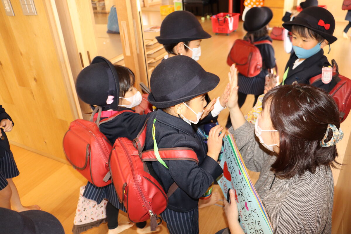 年長さんから、お歌のプレゼントと、すてきな表紙の大~きなメッセージブックが![]()