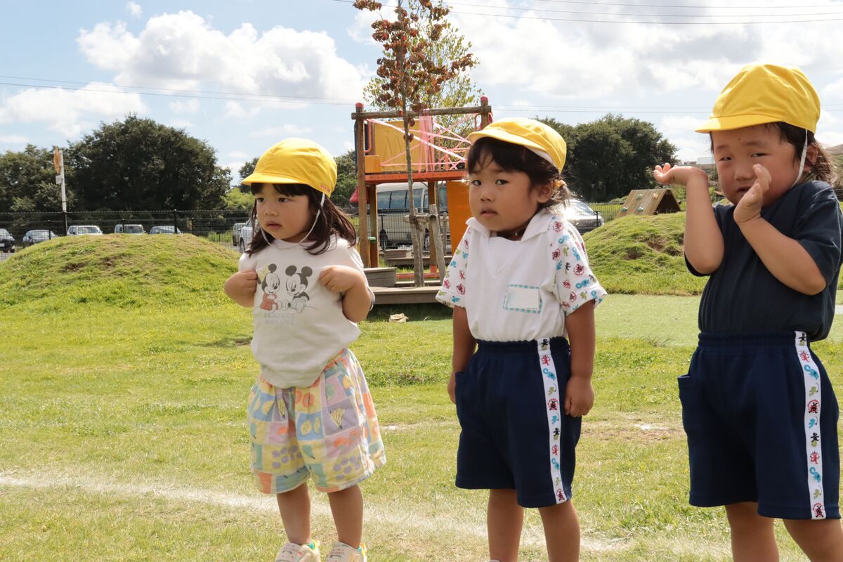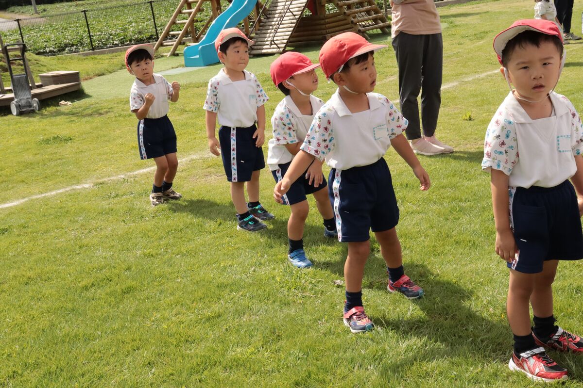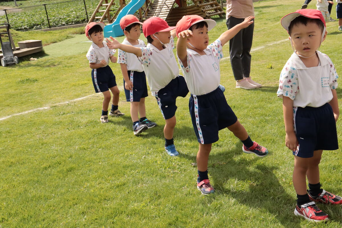 今日から、運動会の全体練習が開始しました!みんなで行進したり、ミッキー体操を頑張っていましたよ!