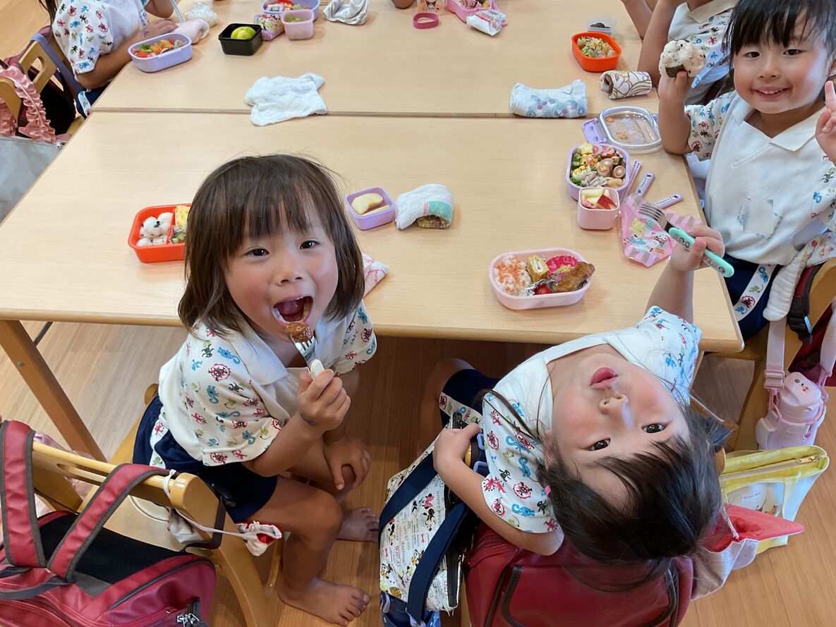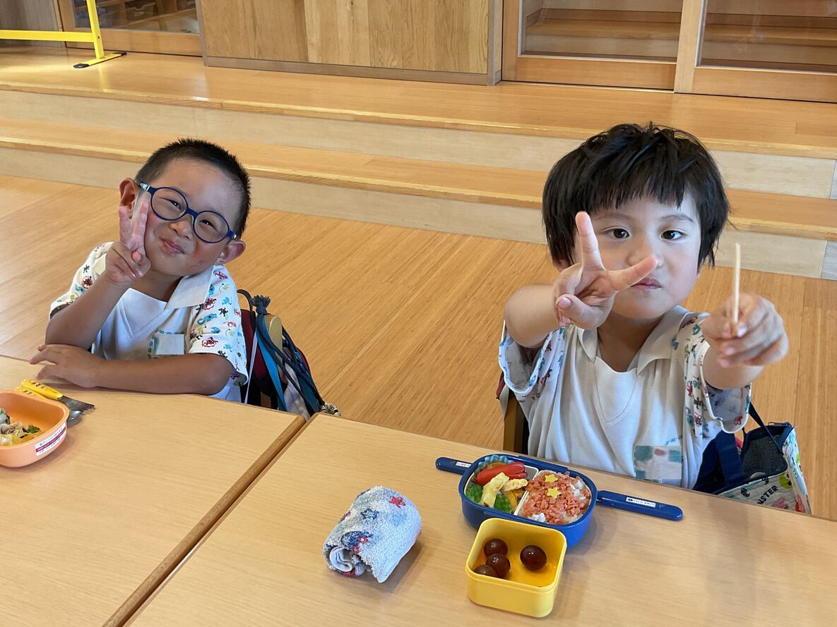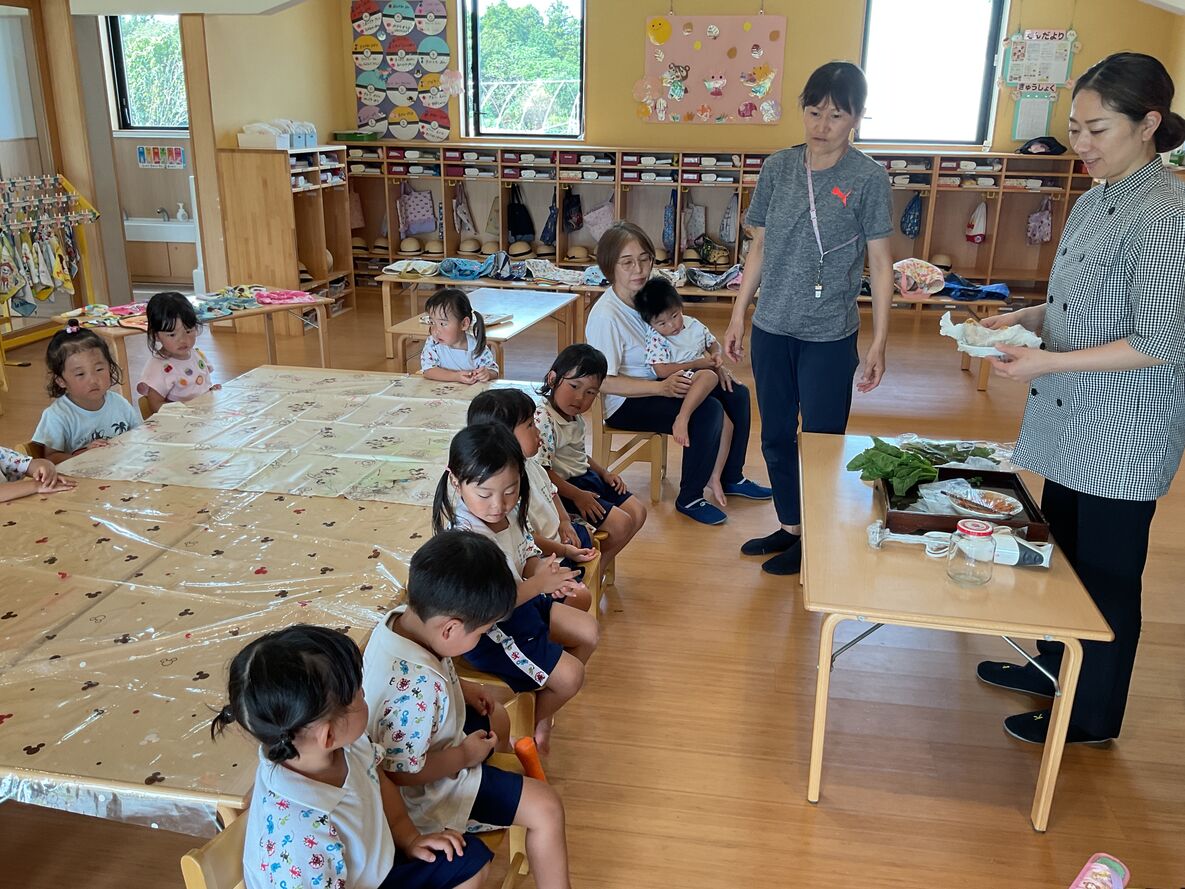 にんじんやほうれんそう、かぼちゃを混ぜてみて、色や感触の違いを楽しんでいました!
