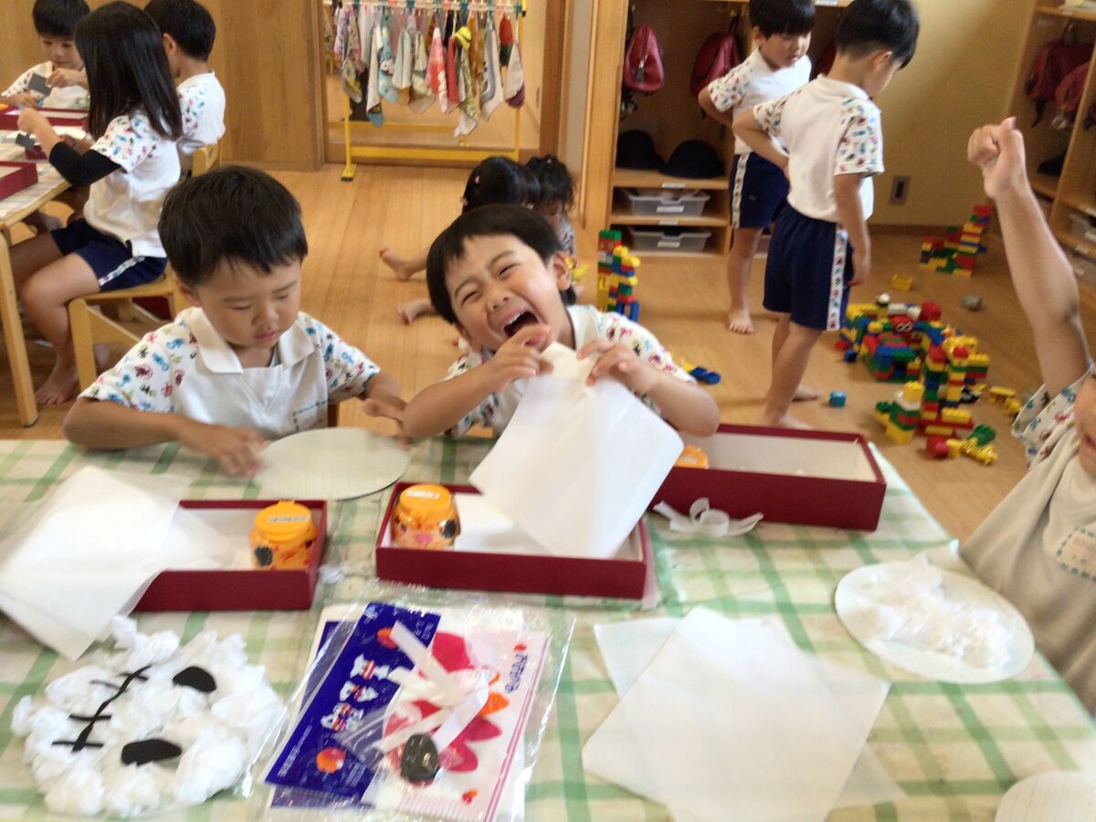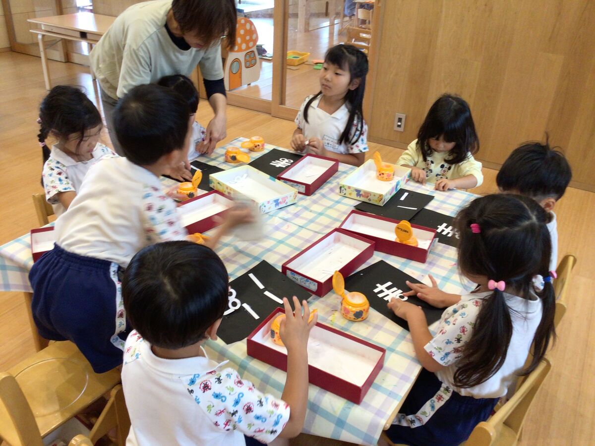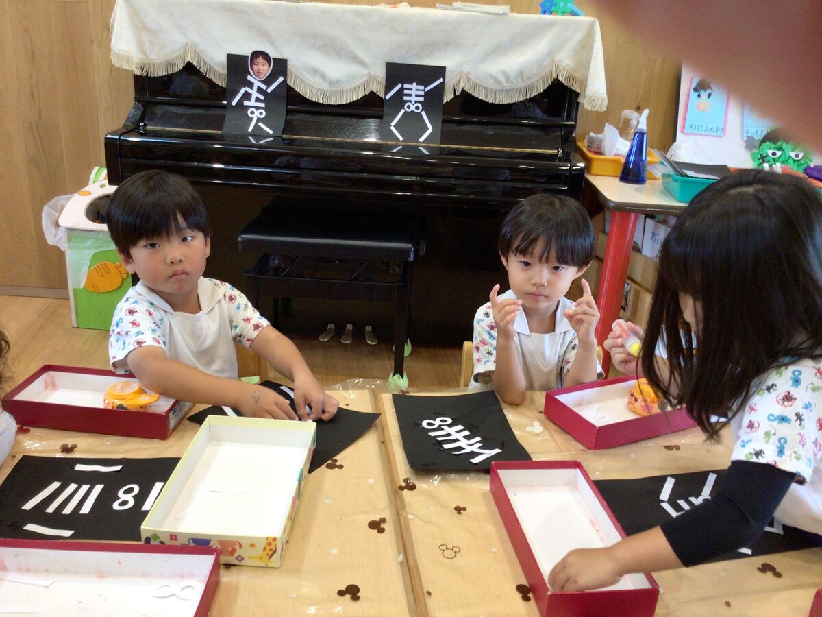 2~5歳のお友達はいっしょのテーブルでハロウィンの制作を楽しんだようです♪