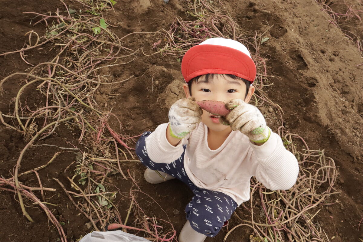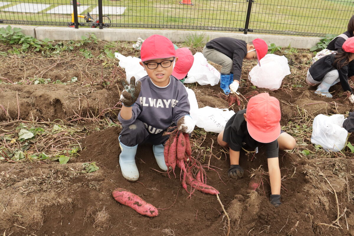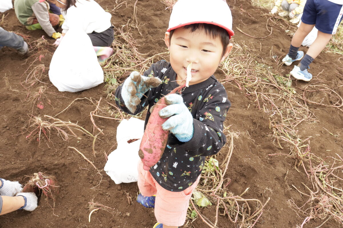 昨日のおいもほりでは、土を嫌がることなく、みんなでたくさんのおいもを掘りだしていました(^^)!