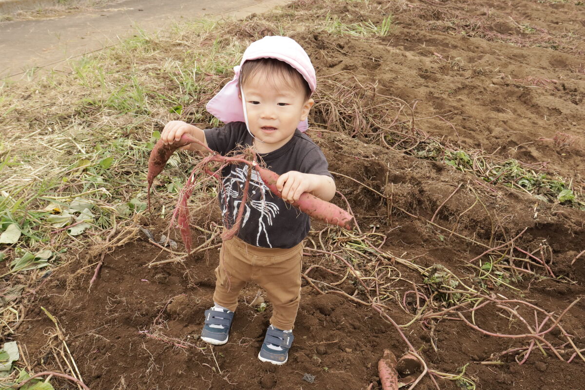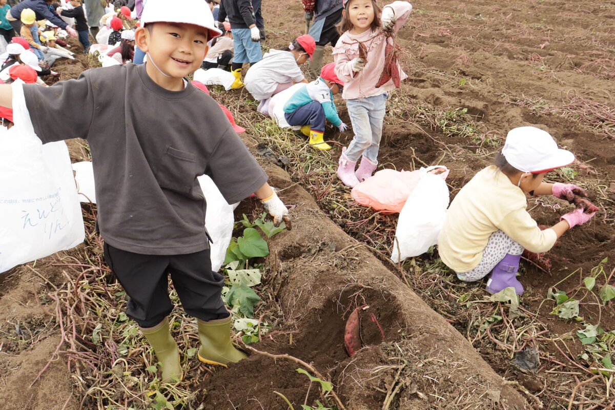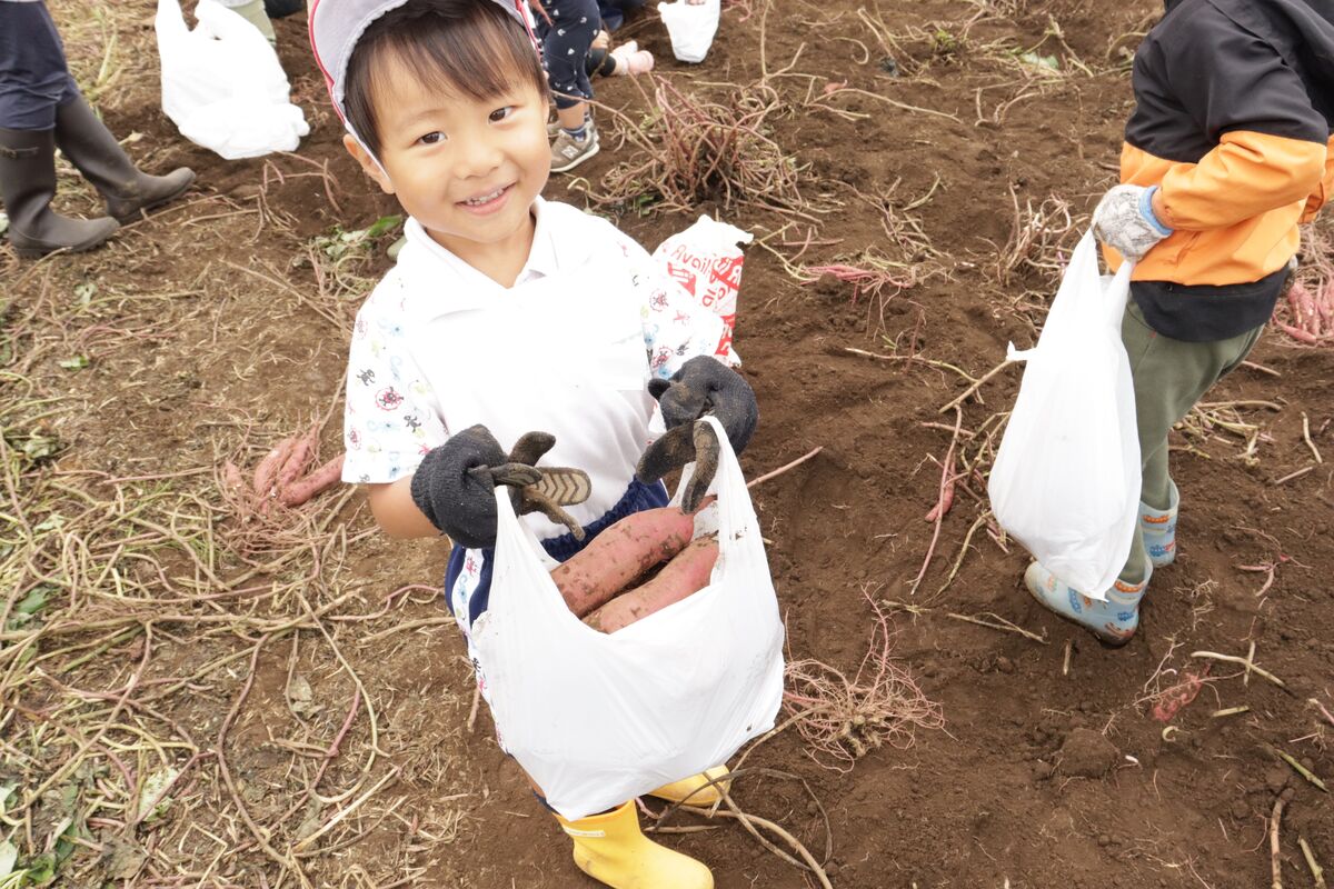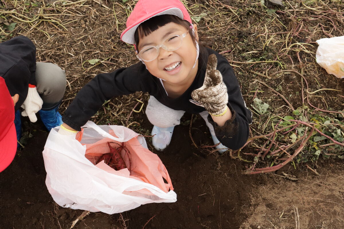 昨日のおいもほりでは、土を嫌がることなく、みんなでたくさんのおいもを掘りだしていました(^^)!