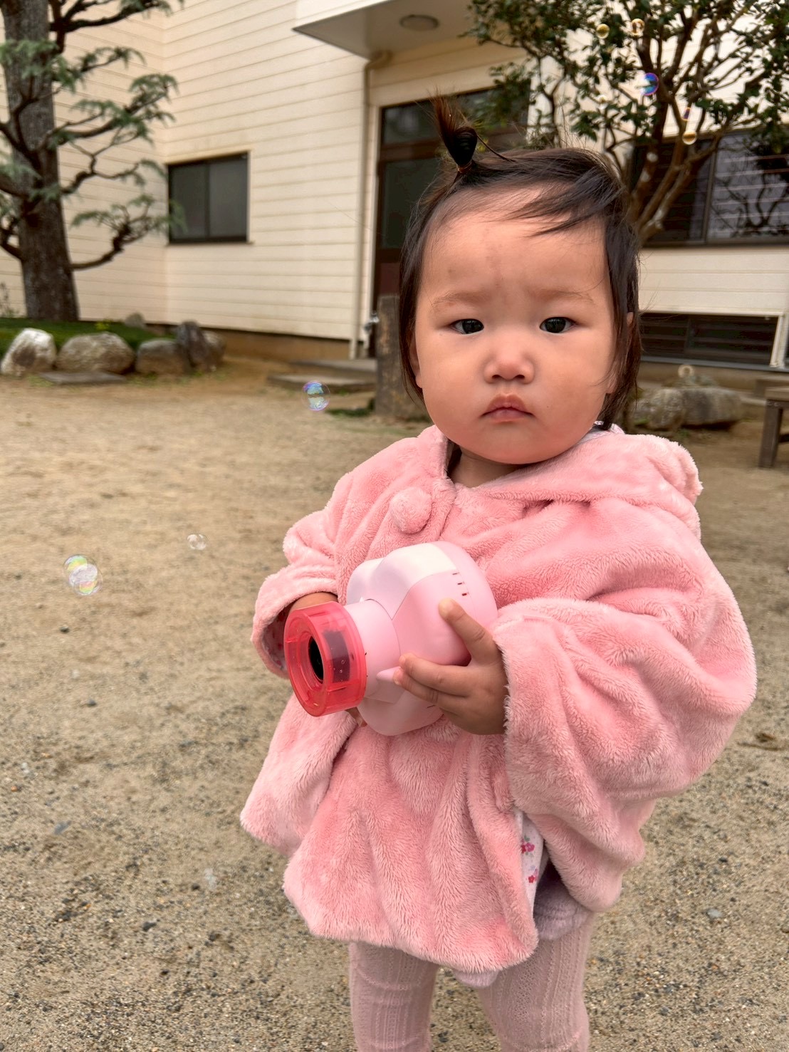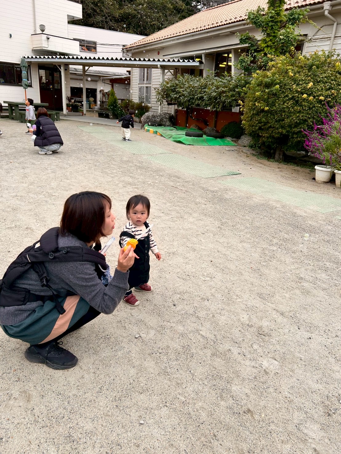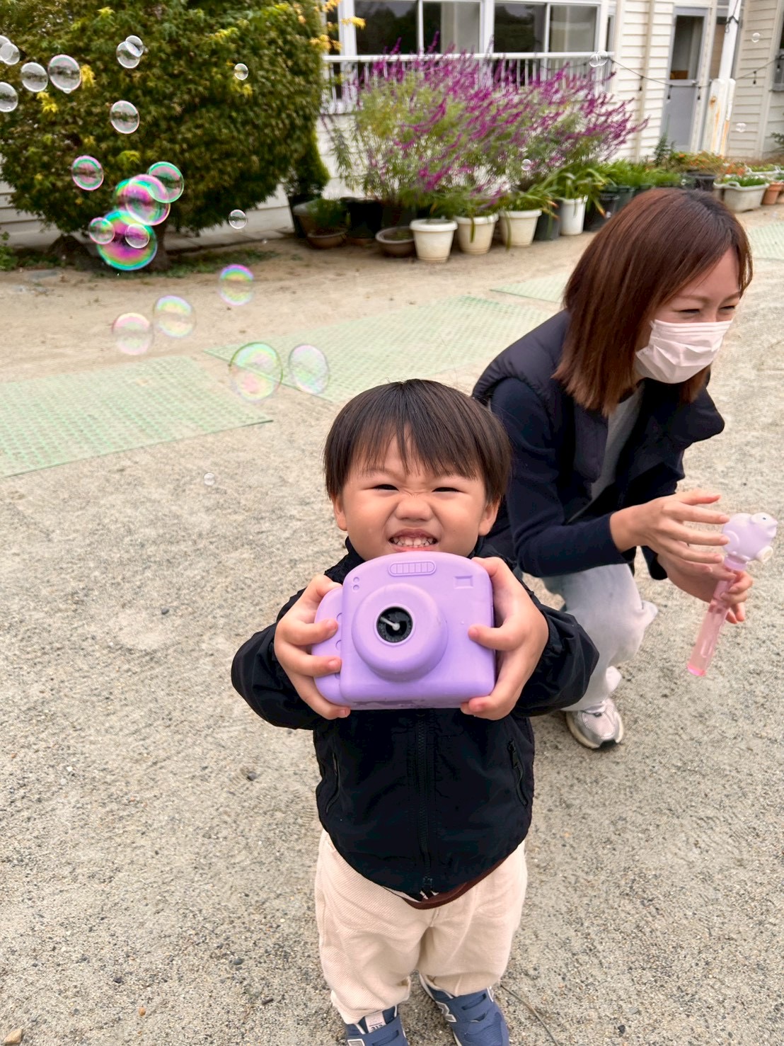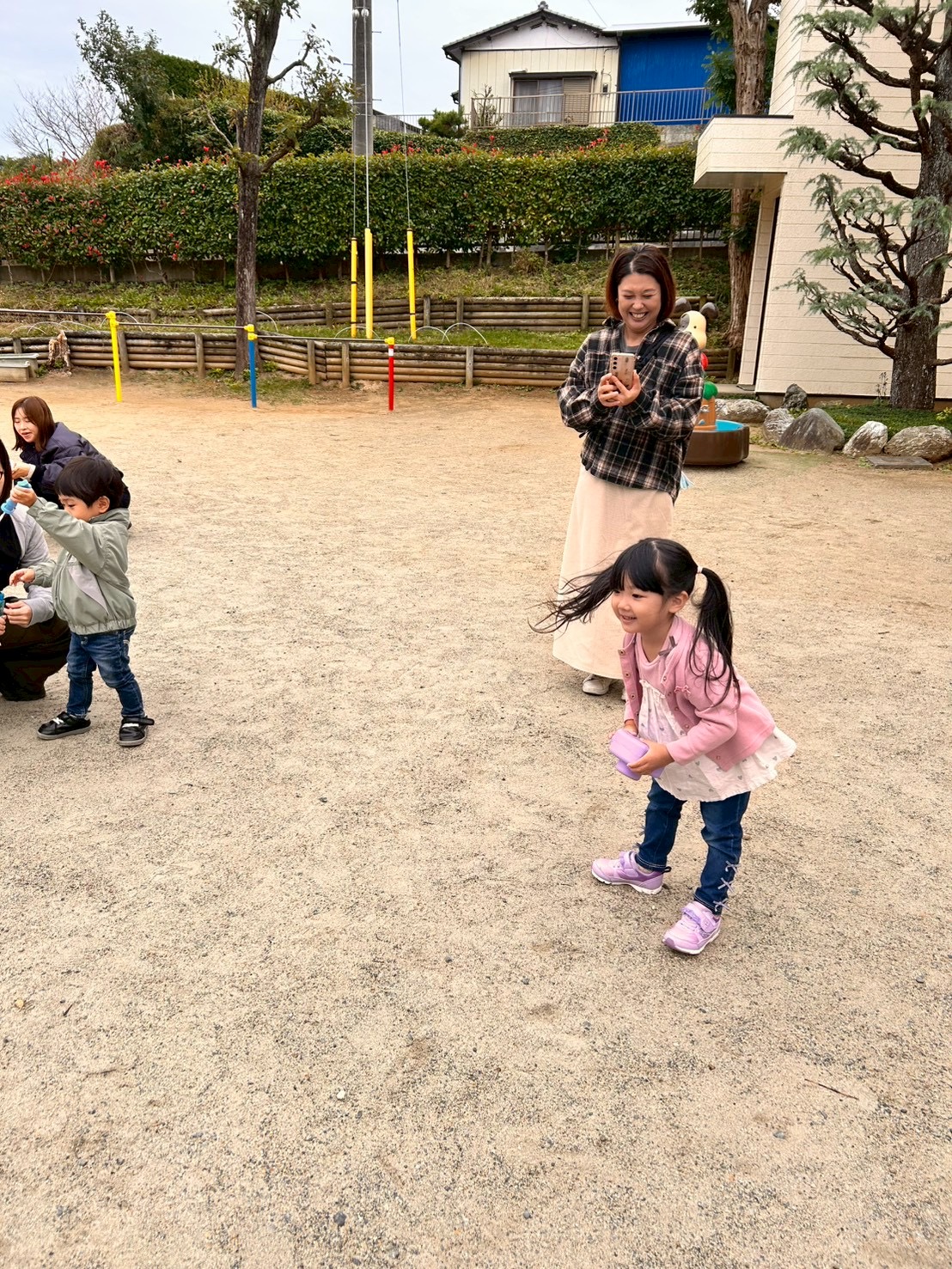 本日は雨の心配もありましたが☔️、お天気もなんとかもってみんな元気いっぱいに寒さを吹き飛ばす笑顔で園庭でシャボン玉遊びを楽しみました😊