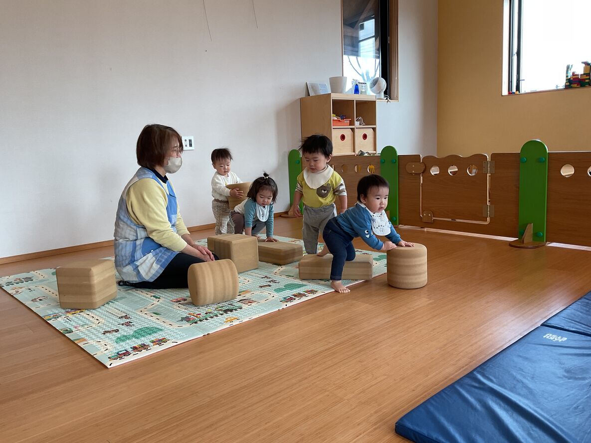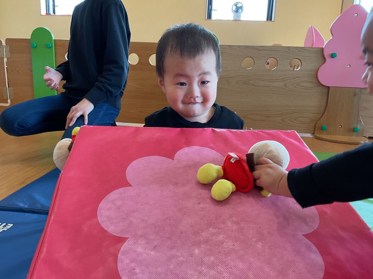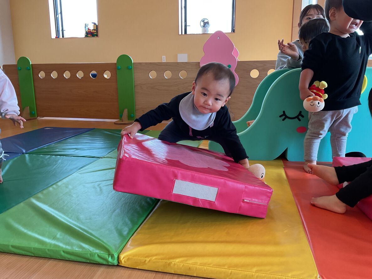 カスタネット組さんは、先生達がお部屋の中にアスレチックコーナーを作ってくれて、思いっきり体を動かして遊んでいました^^