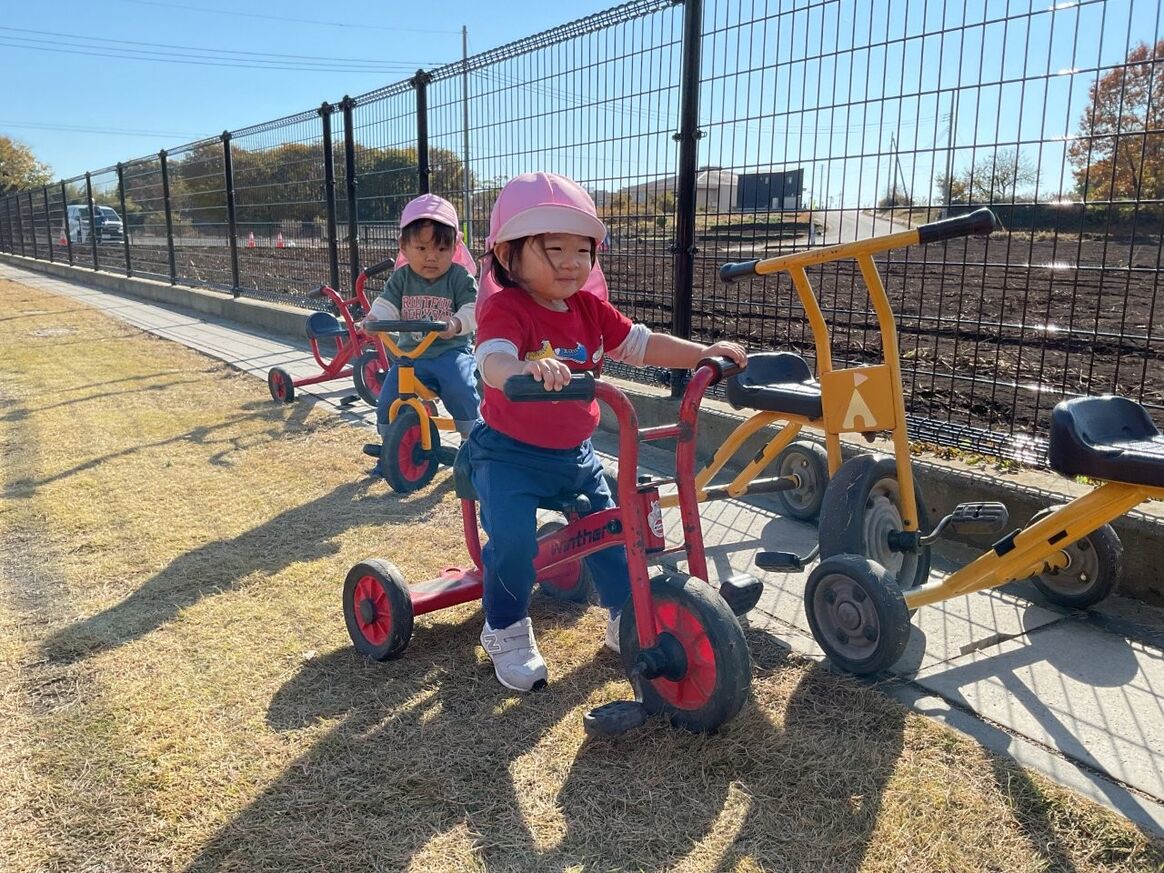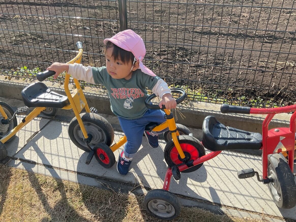 日頃はお兄さん・お姉さんたちに遠慮して(?)挑戦していなかった三輪車などの園庭遊具を、