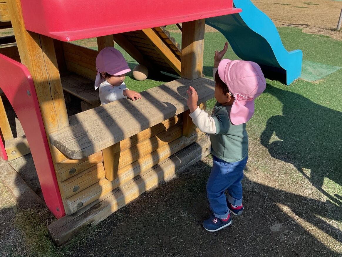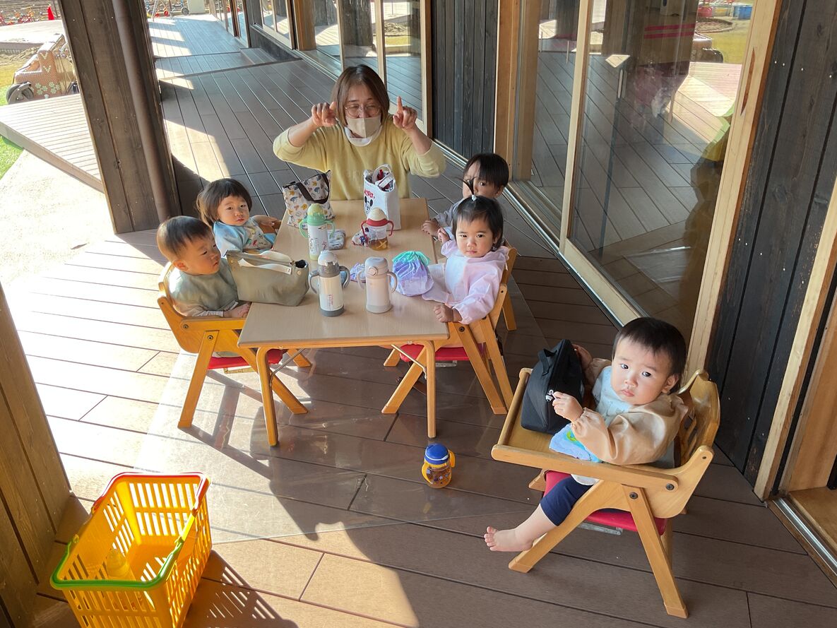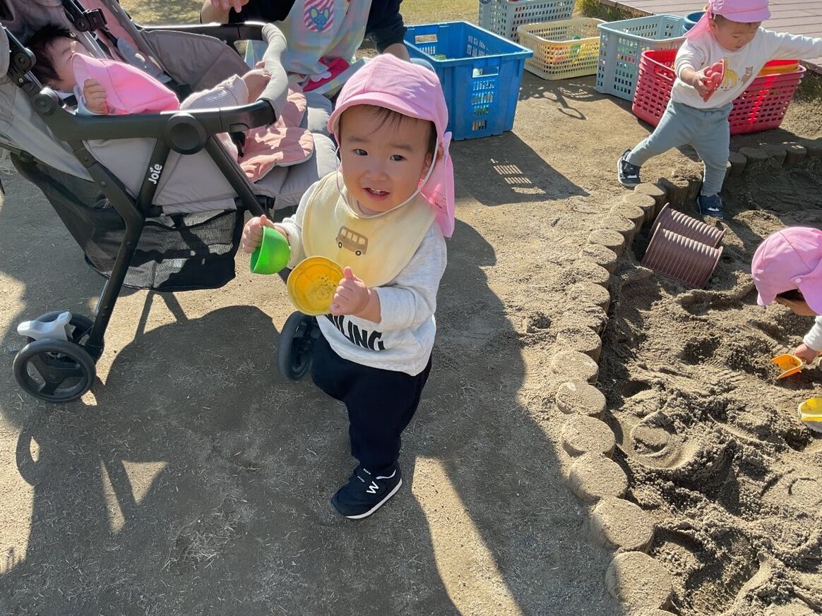 その頃…園でお留守番の0歳児さんたちは、園庭を独占!