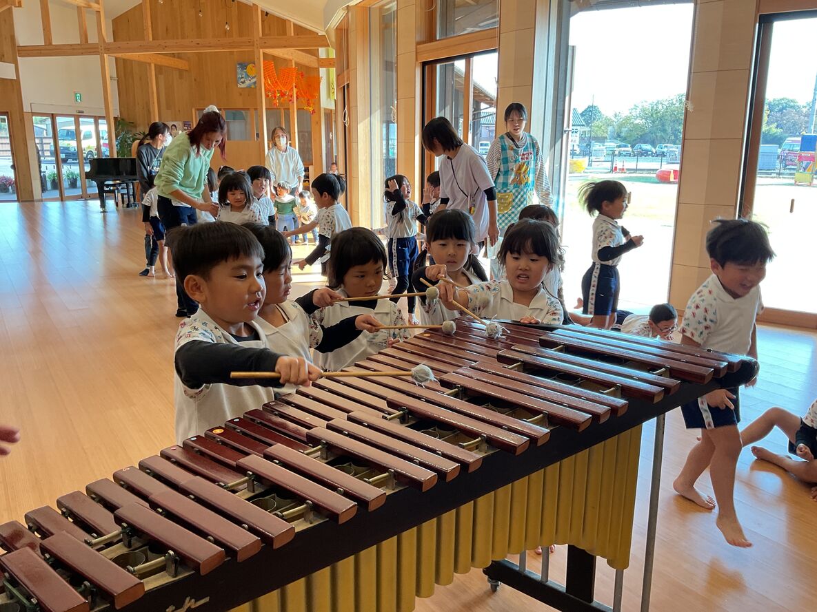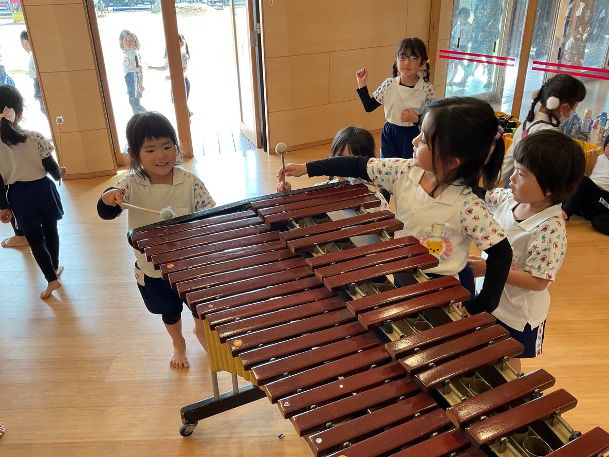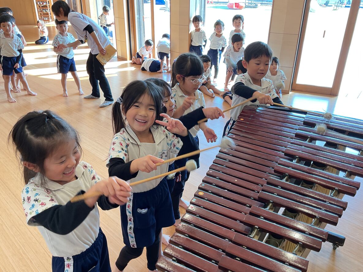 新しいピカピカのマリンバが幼稚園に。日頃、園に響いている子どもたちの笑い声や歌い声がしみこんでいって、どんな音に変わっていくのでしょうか^^