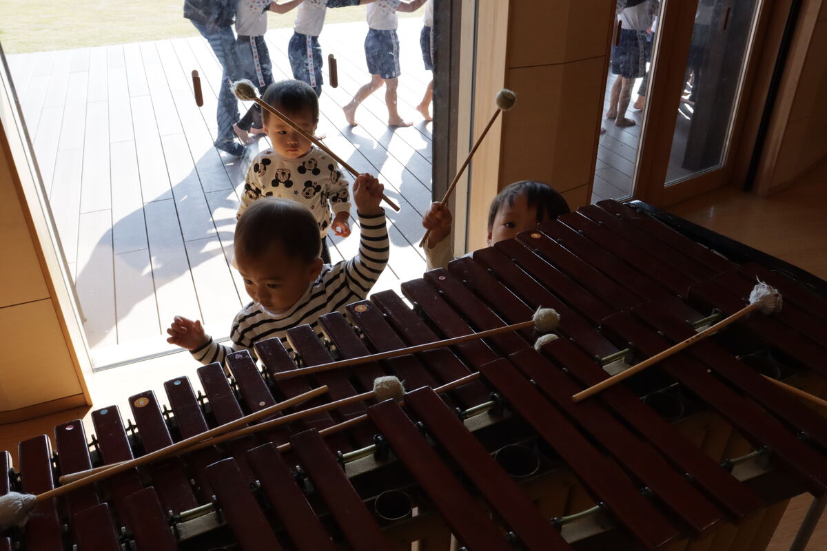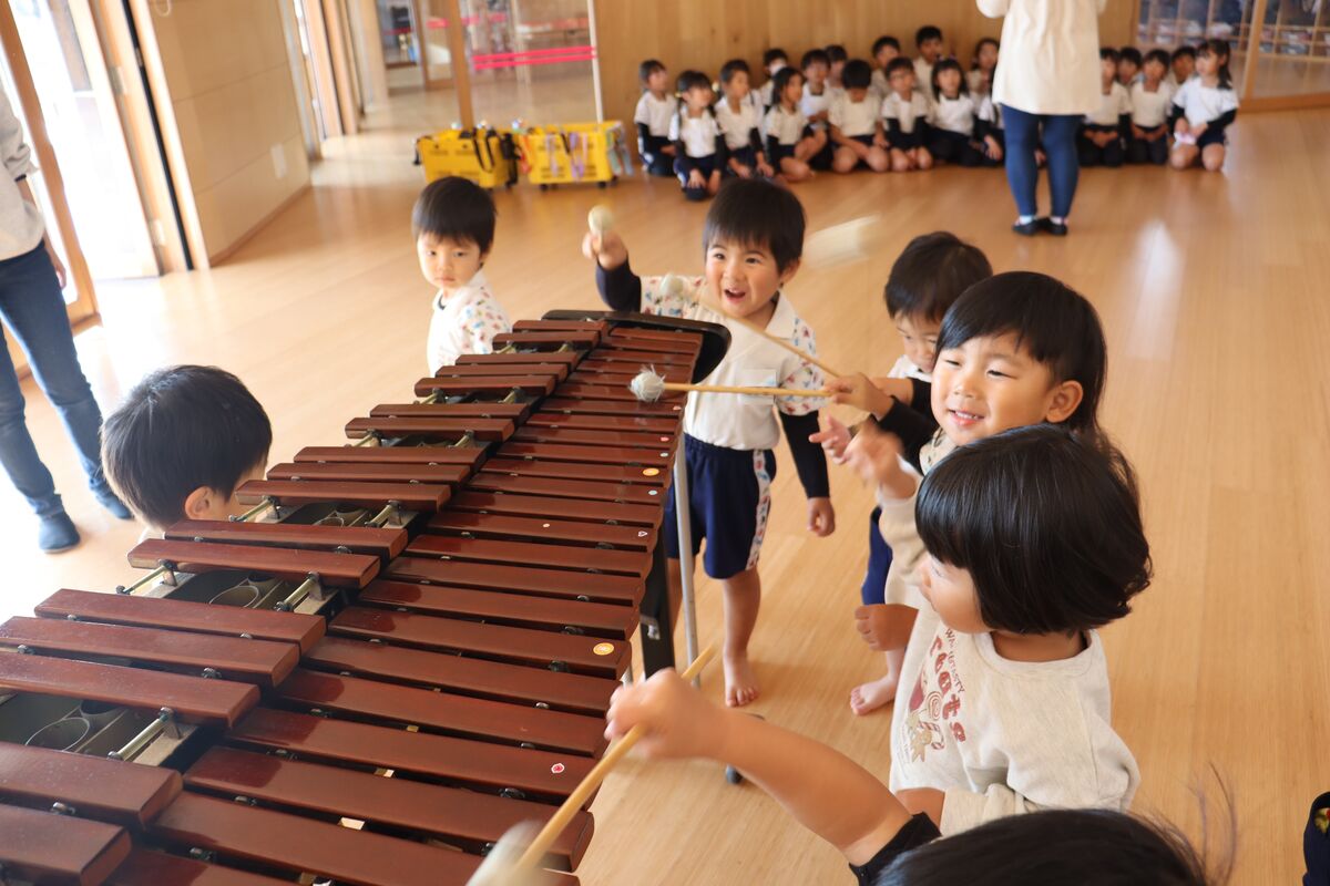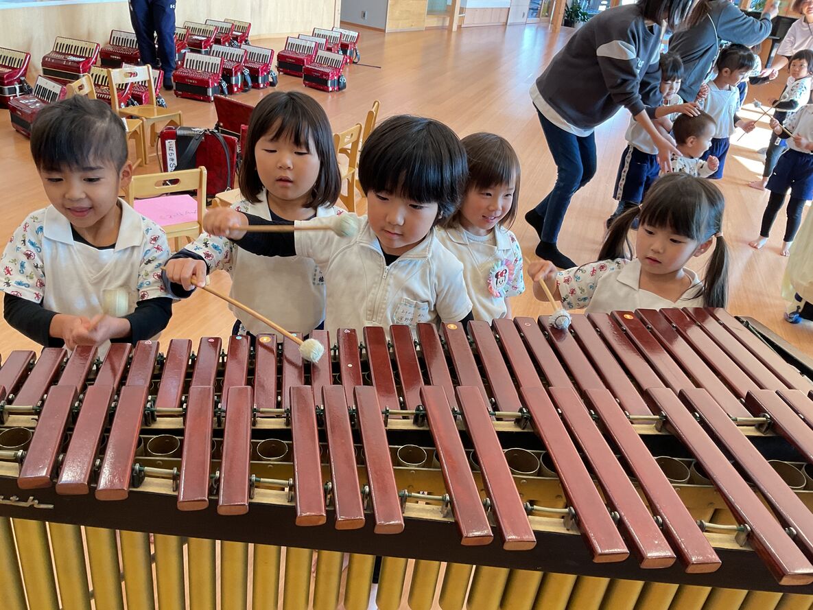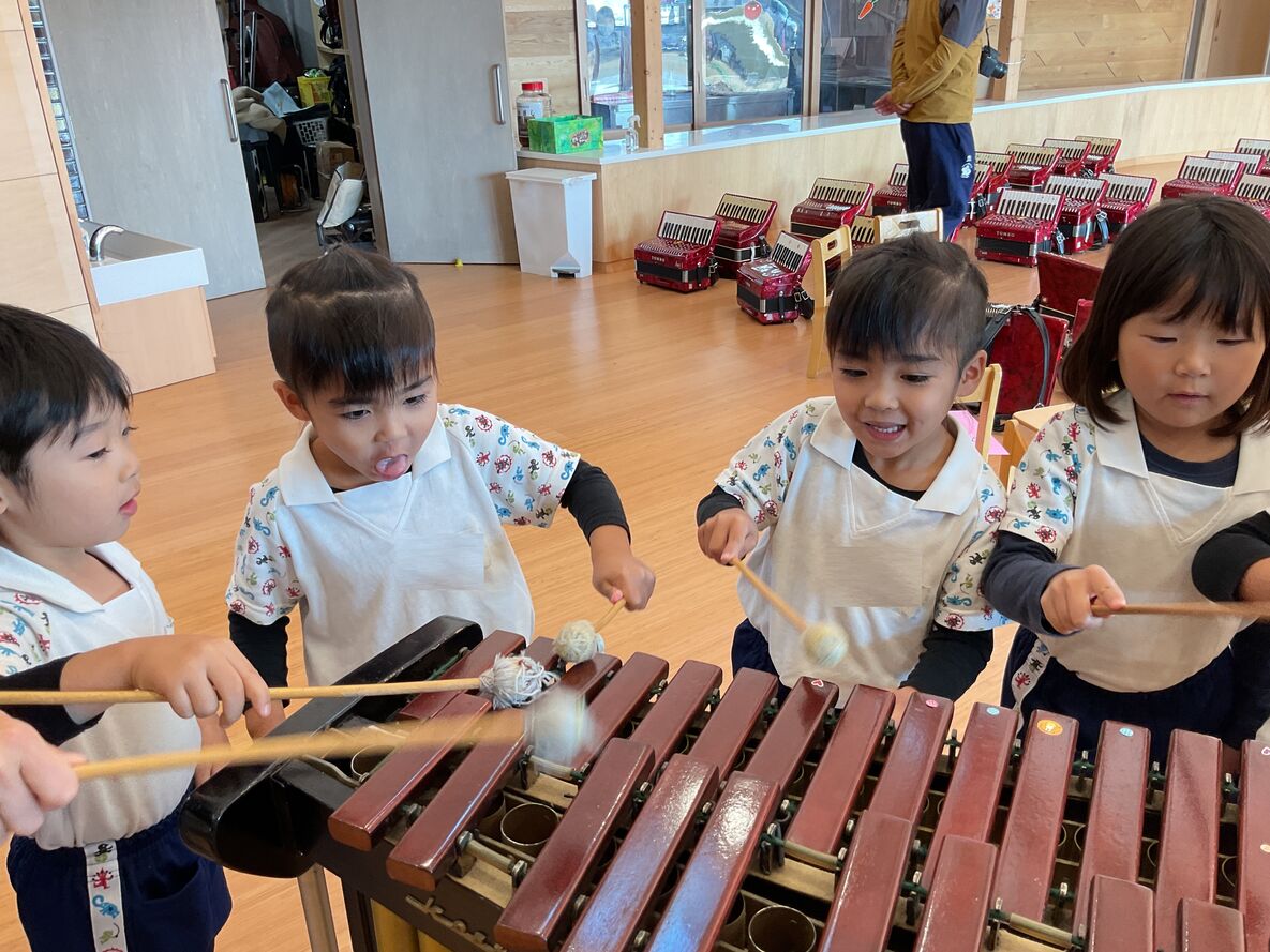 新しいピカピカのマリンバが幼稚園に。日頃、園に響いている子どもたちの笑い声や歌い声がしみこんでいって、どんな音に変わっていくのでしょうか^^
