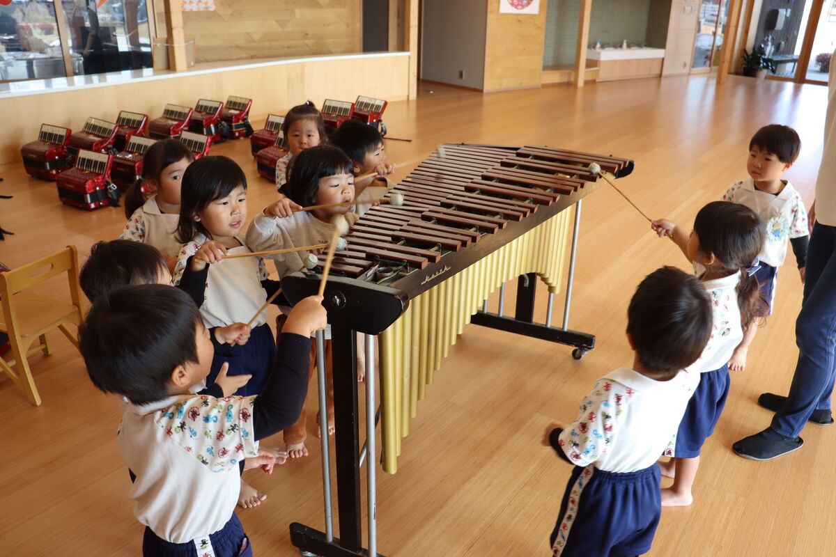 幼稚園で長年使っていたマリンバ(木琴)が、老朽化してきたため、新しいマリンバに交代することになりました!