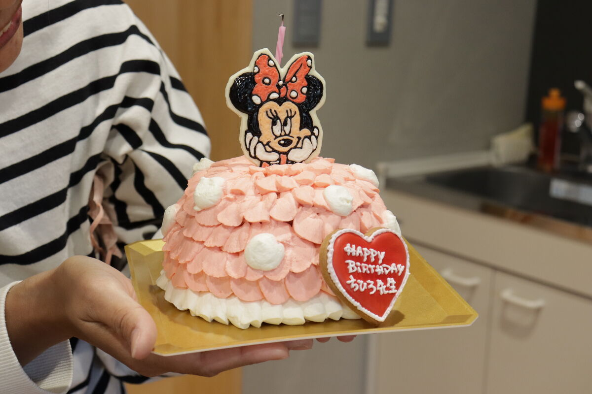大好きだというミニーちゃんのケーキでお祝いしました♪おめでとうございます🎂!!