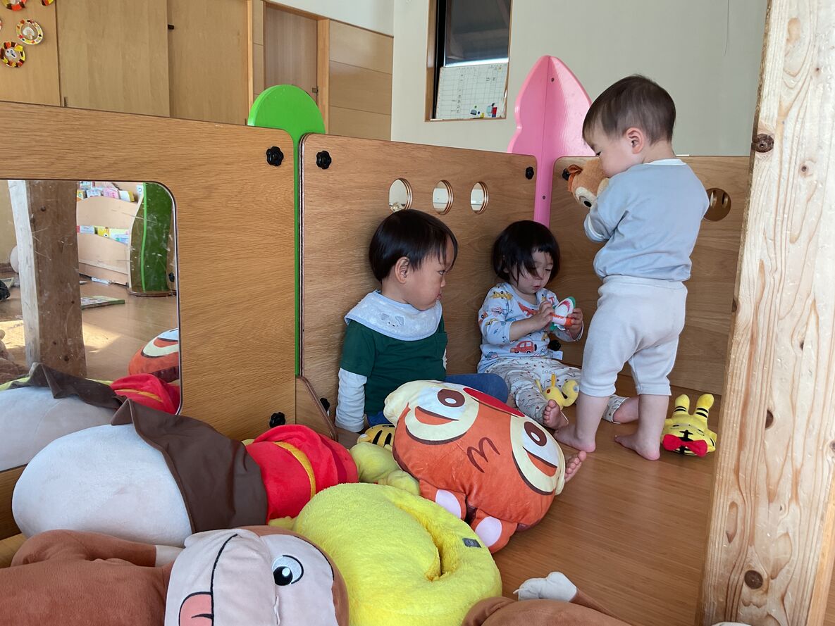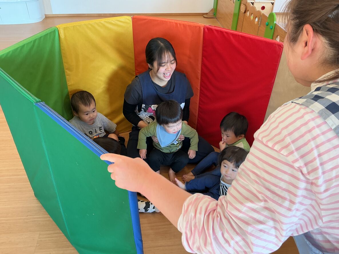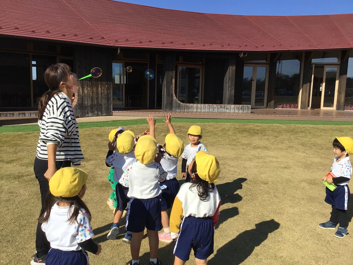 バスに乗って旧園舎に移動し…年長さん・年中さんはフメラ先生と歌って踊って楽しく英語に親しんだり、英語の絵本を読んでもらったりしました。いつか来る、海外の方と話す場面で…フメラ先生と楽しい時間を過ごしたことがきっと活きることでしょう^^
