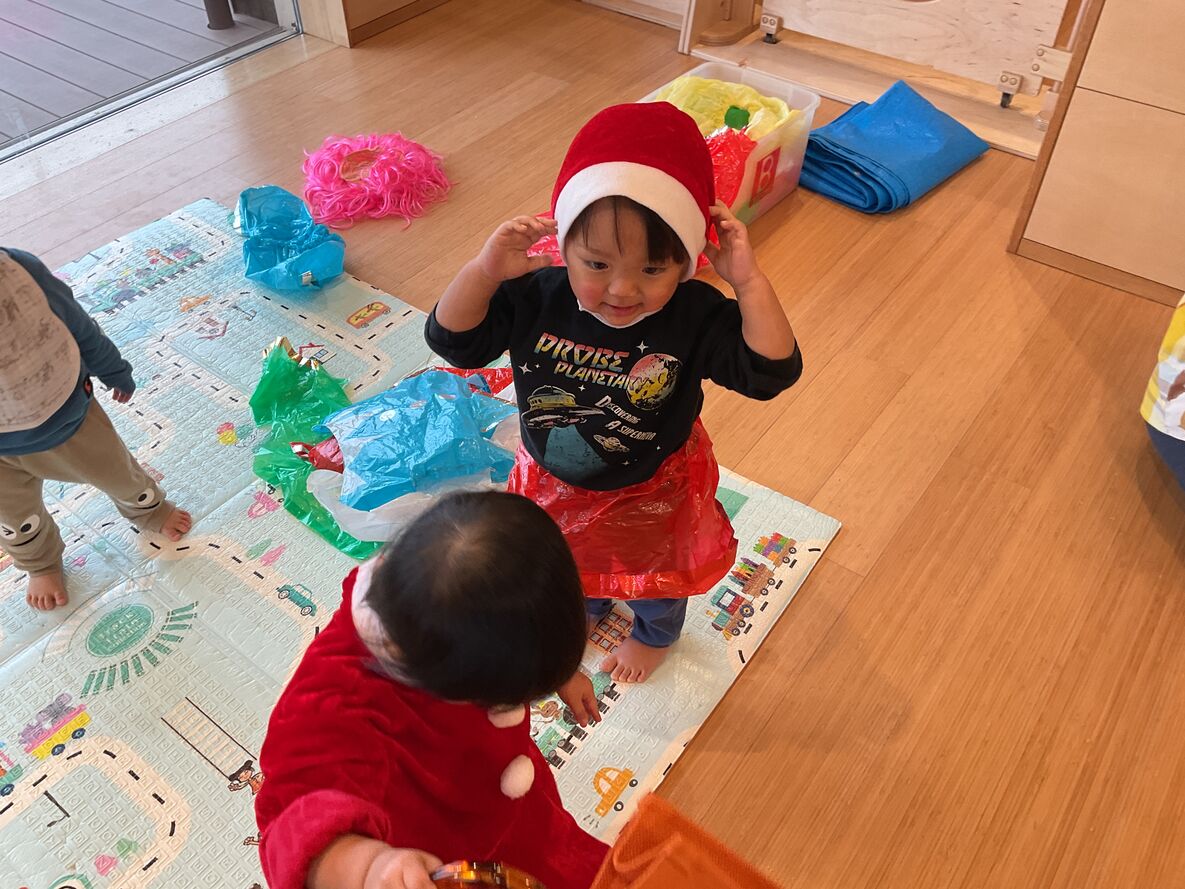 今日は、サンタさんになってみたり… エプロンを付けてママや先生になってみたり…