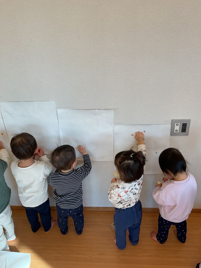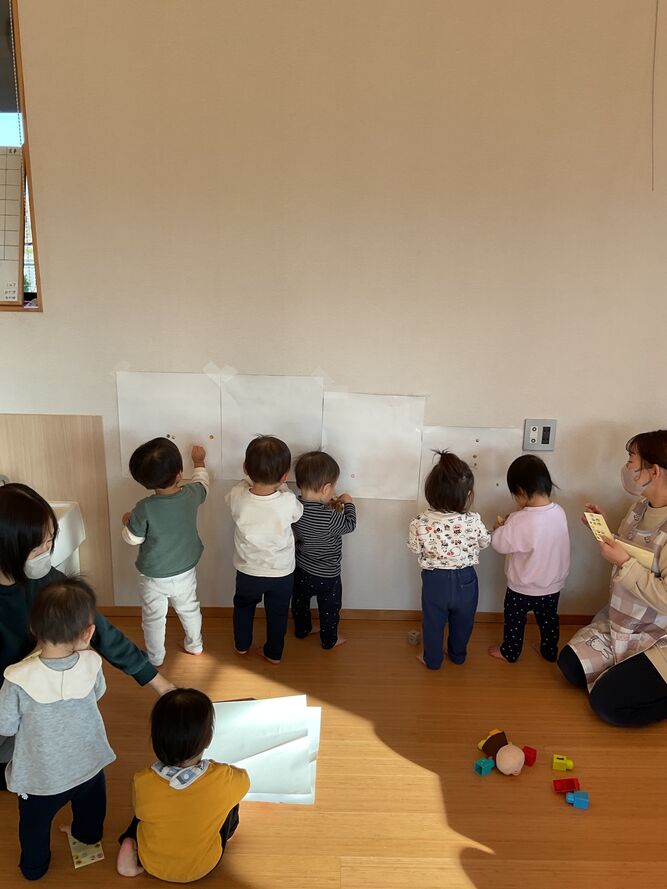 ぺたぺた…カスタネット組さんはシール遊びをしたり、運動遊びをしたりしながら…そしてお家の方と先生達の愛情をめいっぱい浴びながら…自分の世界を広げています!
