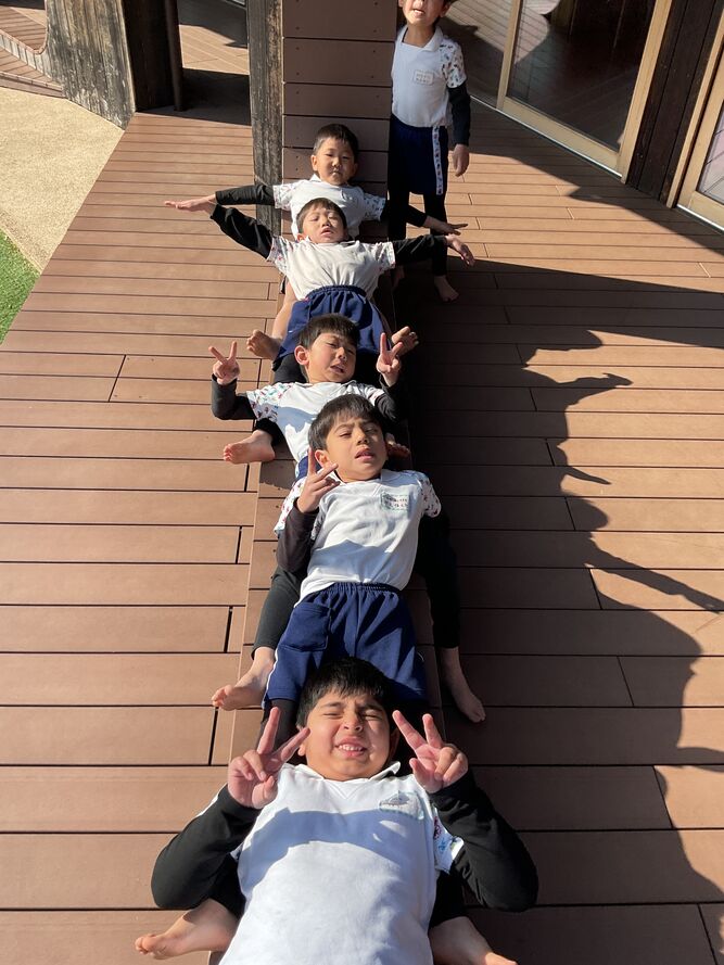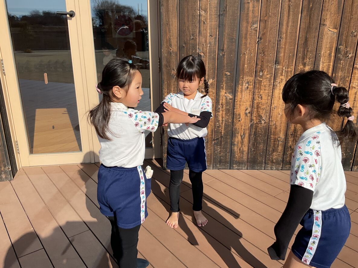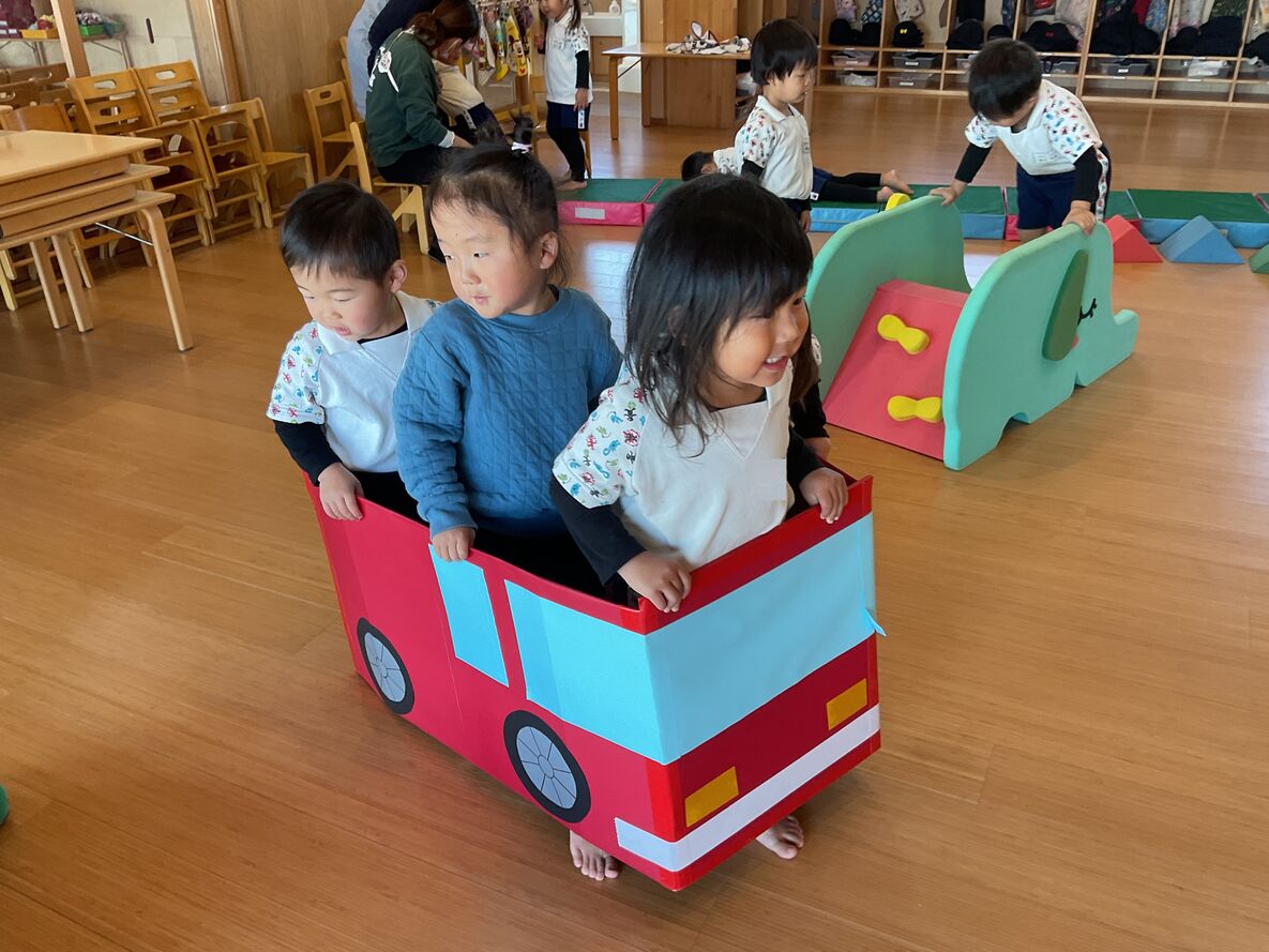 今日は初めて、年少・年中・年長の3学年で、初めて合奏の練習をしました!