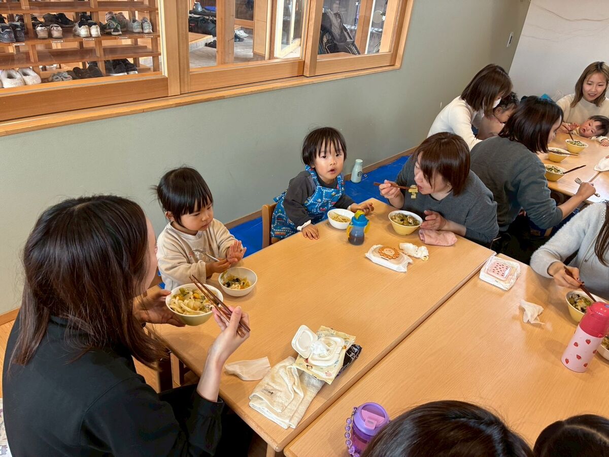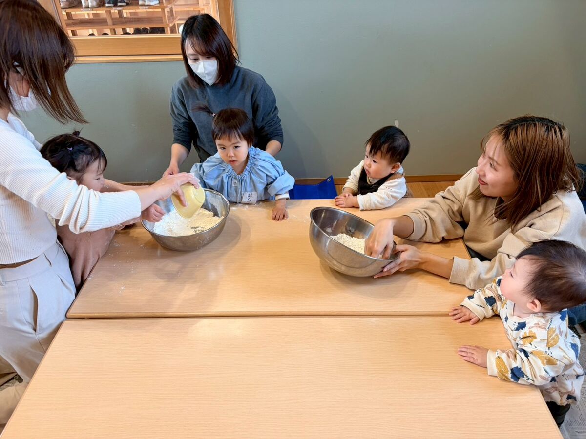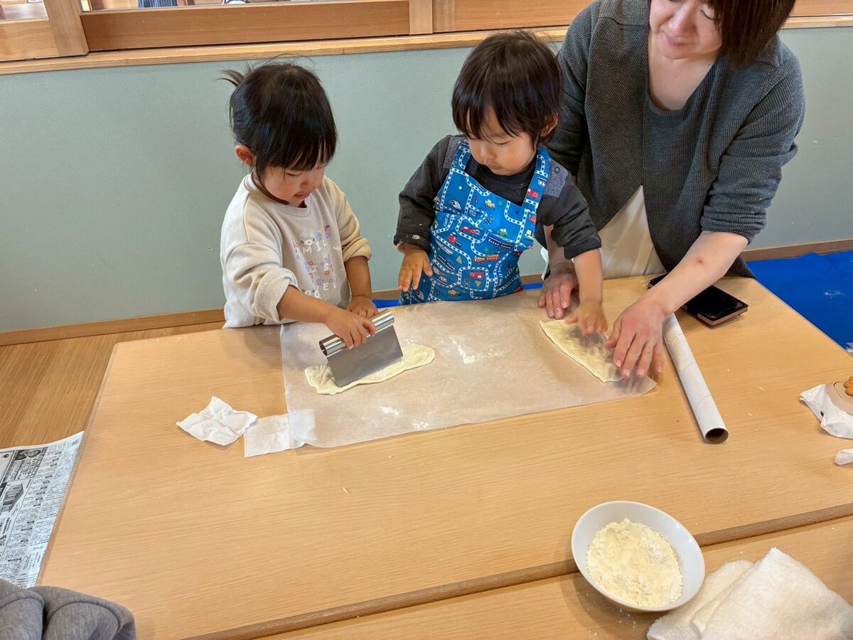 1月28日(水)のトドラーズクラブは『親子クッキング〜手打ちうどん作り〜』でした😊