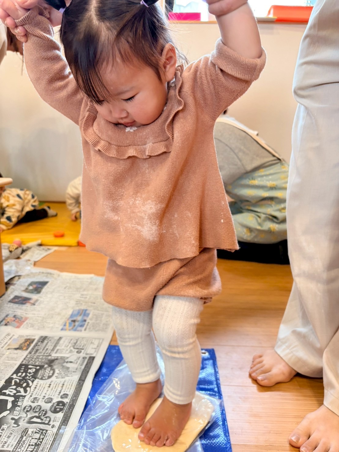 生地が出来たら、今度は袋に入れてみんなで踏み踏み🦶🦶頑張って踏むとコシが出ておいしくなります🤤