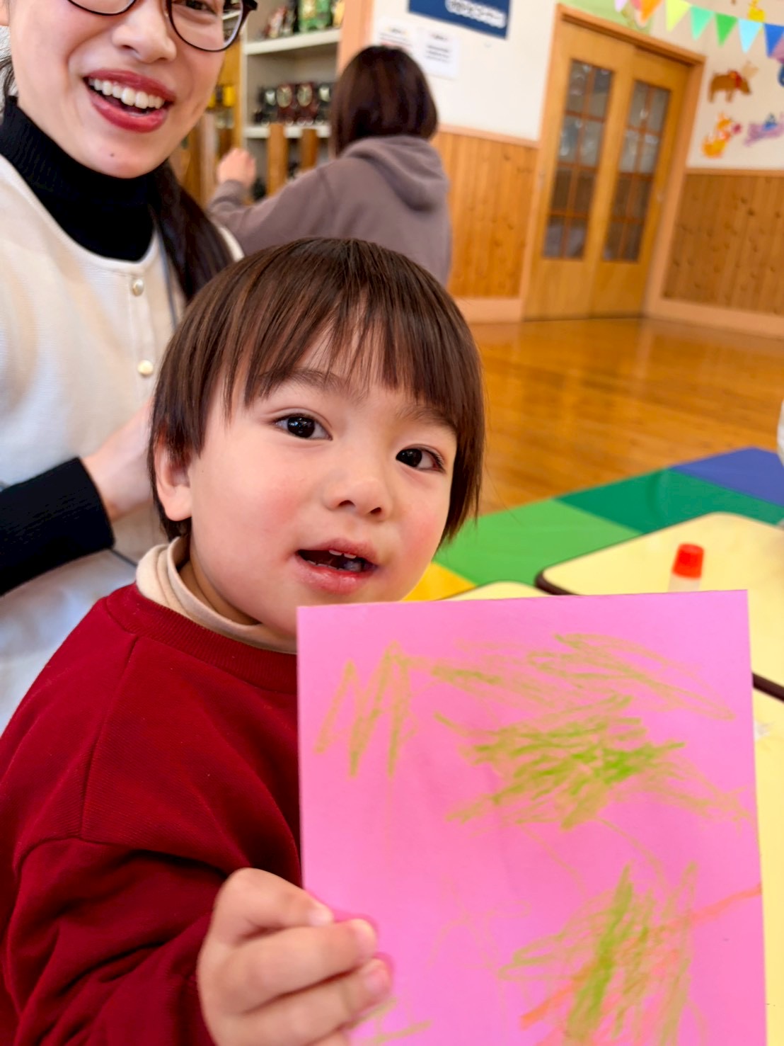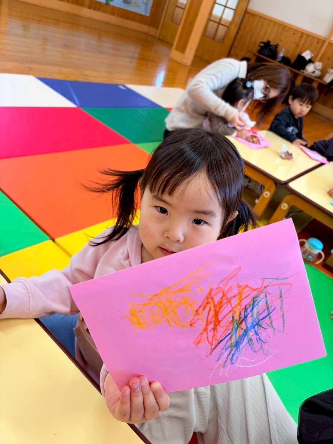クレヨンでお絵描きしたり、シールを貼ったりと最後まで集中して作業しているお友達もいて、すごく成長を感じさせていただきました🥰