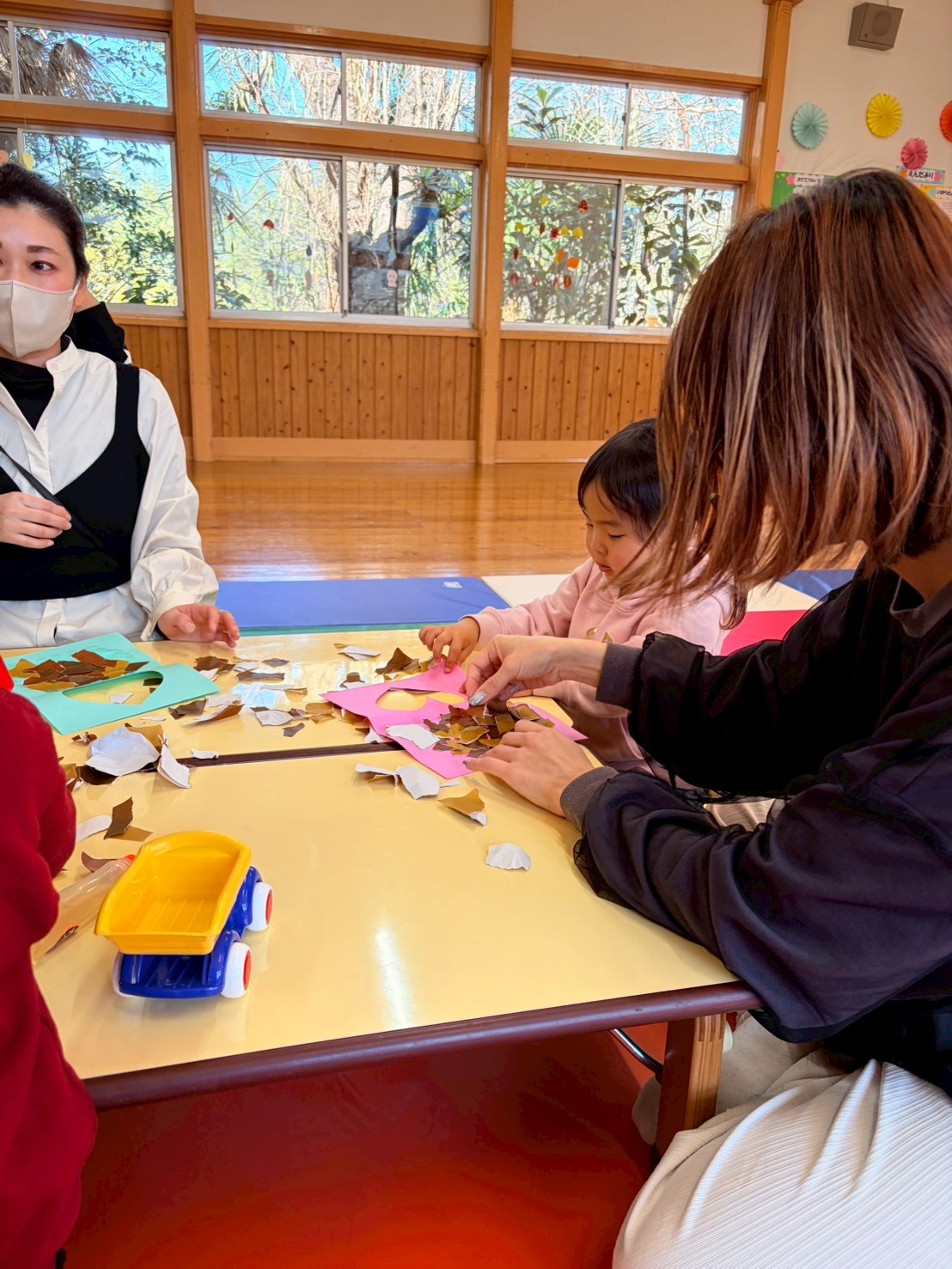 大好きな人への手作りカードをみんなで作りました✉️🩷指先を使って折り紙をビリビリにして、のりでペタペタ貼りました!指先を使うのも上手になりました👏