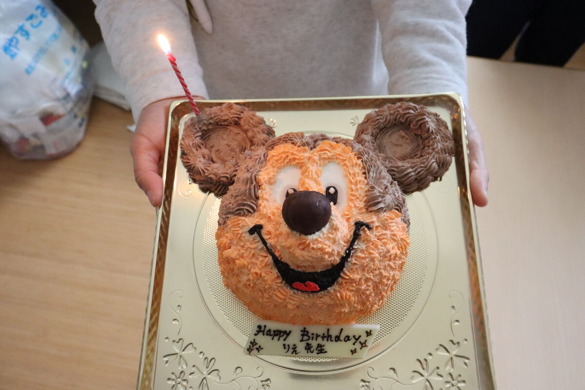 今日は素敵な美術センスを発揮しまくっている、りえ先生のお誕生日でした♪ミッキーのケーキでお祝いしました!!ミッキーの鼻の部分、もしかしてチョコでコーティングされた笠間の栗でしょうか…?とっても美味しそうです!おめでとうございます🎂!
