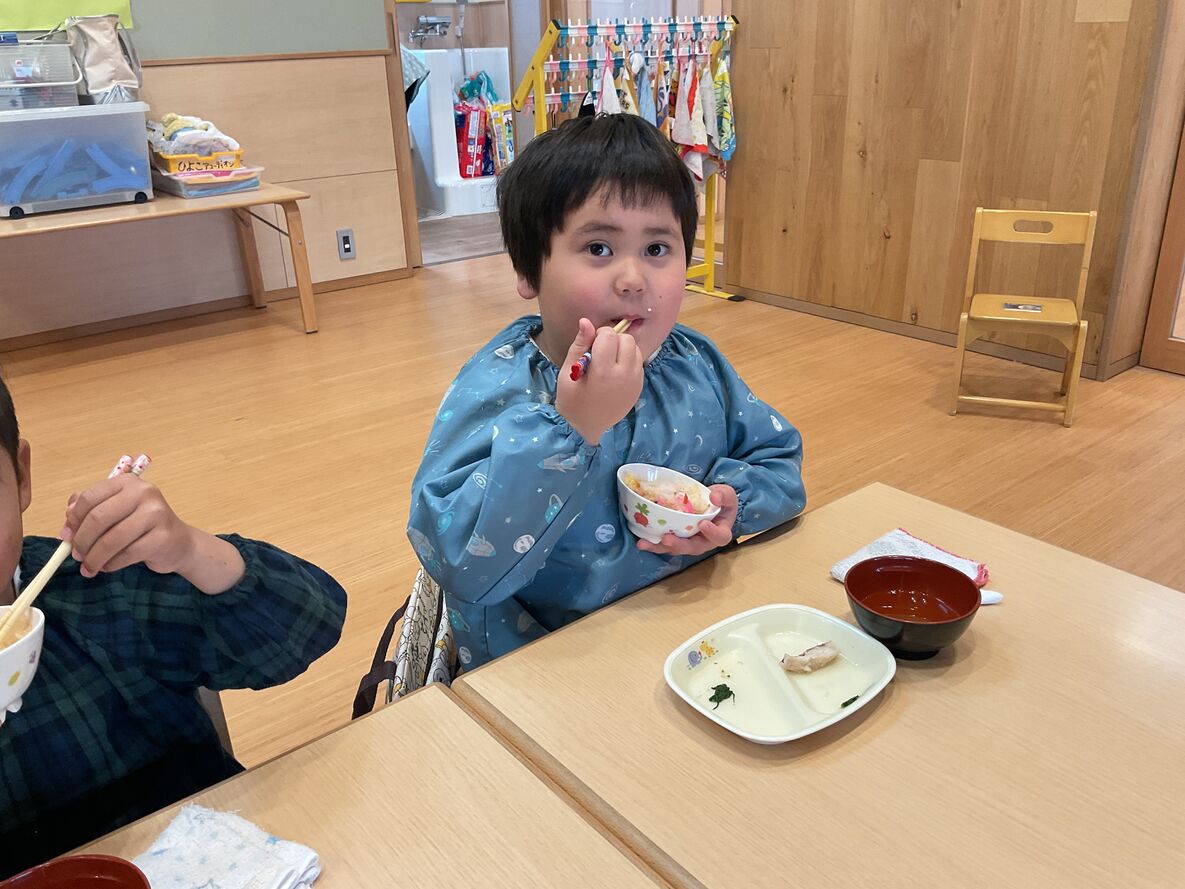 給食を食べる時には進んでひよこさんに食べさせてあげたり…