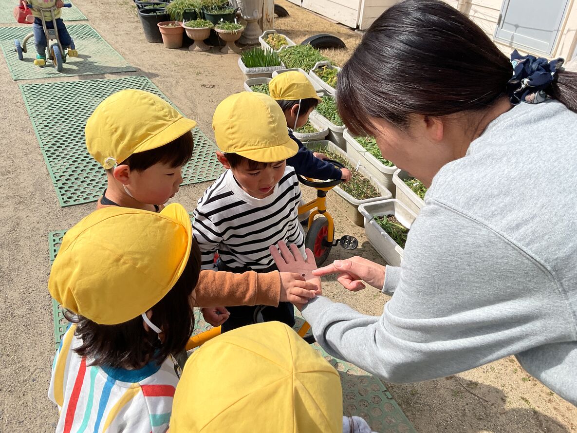 最近は、朝の園庭でみんなでリレーをするときにひよこさんと手をつないで一緒に走ってあげたり…
