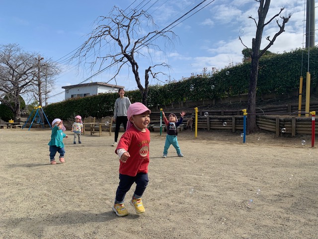 旧園舎の園庭にはカスタネット組さん、ひよこさんも鉄平先生の運転してくれるバスに乗って遊びに行って…思い切り体を動かして楽しんできました!