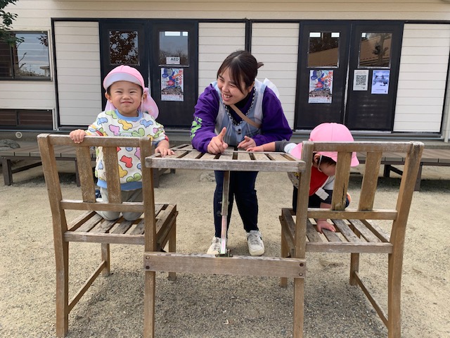 制作の時間では年中さん・年少さんが作っているところを少し支えてあげたりなど…