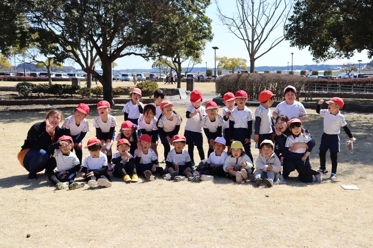 先週の木曜日、年長さんとのお別れ遠足として…みんなでバスに乗って“ゆうゆう館”の広場へ遊びに行きました!今年一年、一緒に生活してきたピアノ組・アコーディオン組・ハーモニカのみんなで撮る最後の集合写真です!