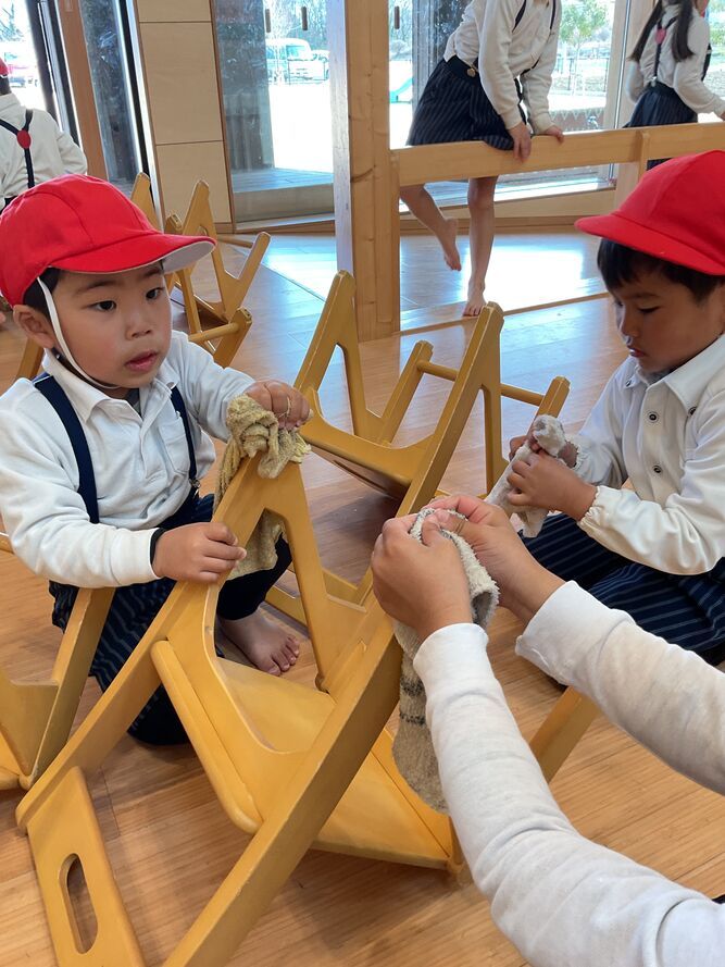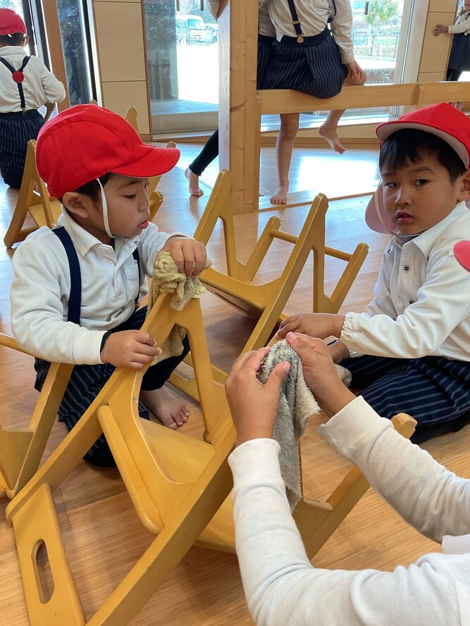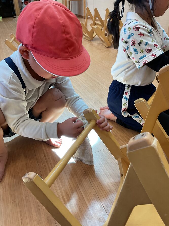 「一年間、ありがとう!」と、イスをきれいにしたり、お部屋の掃除をしたりもしました!
