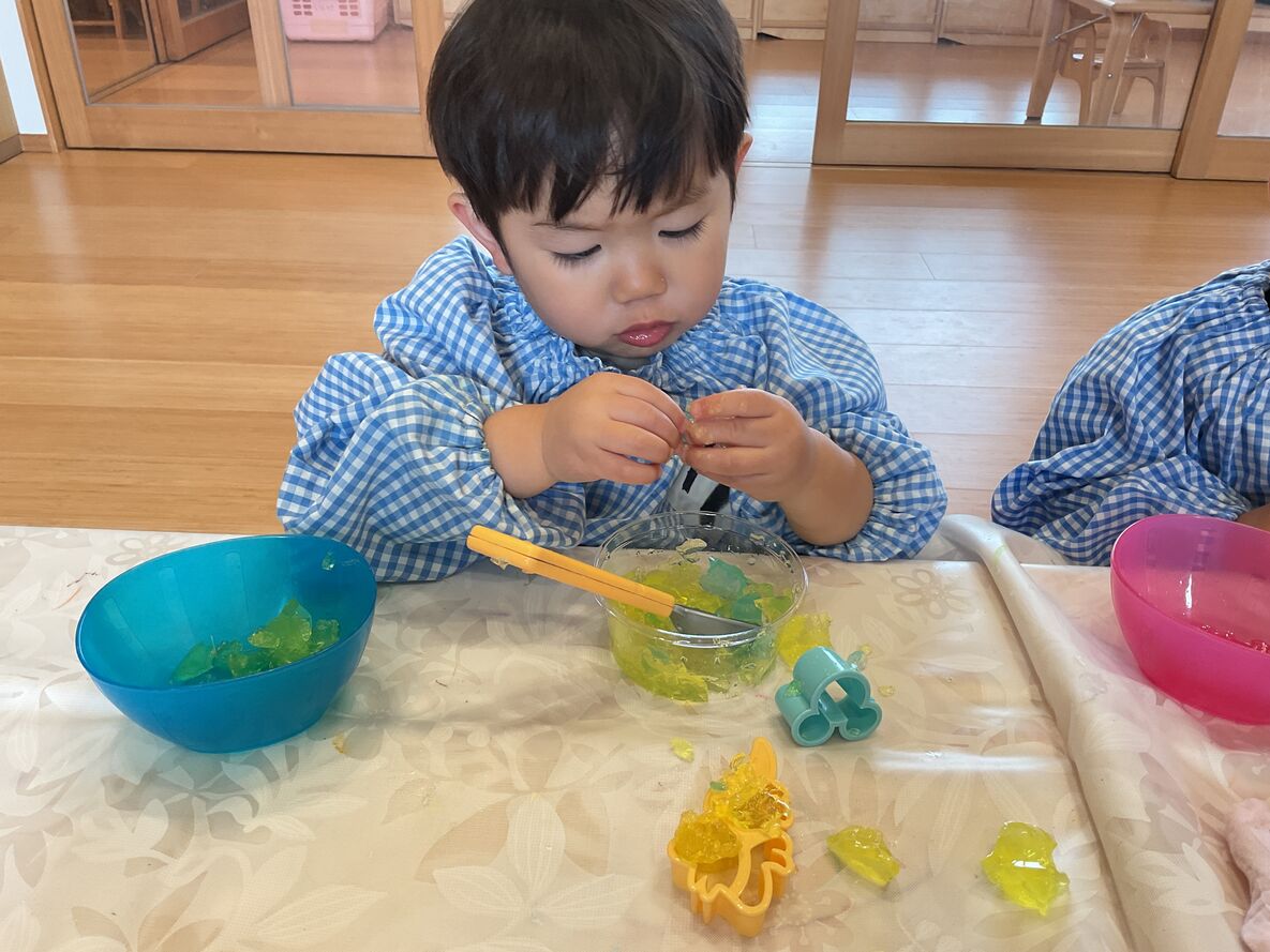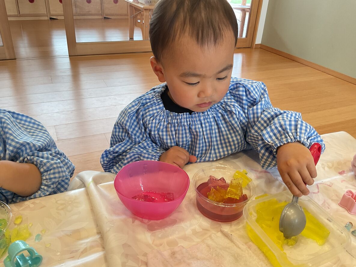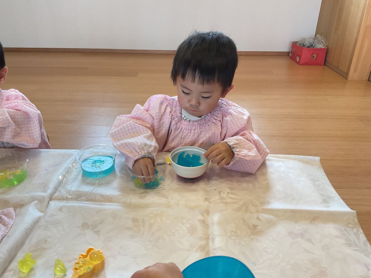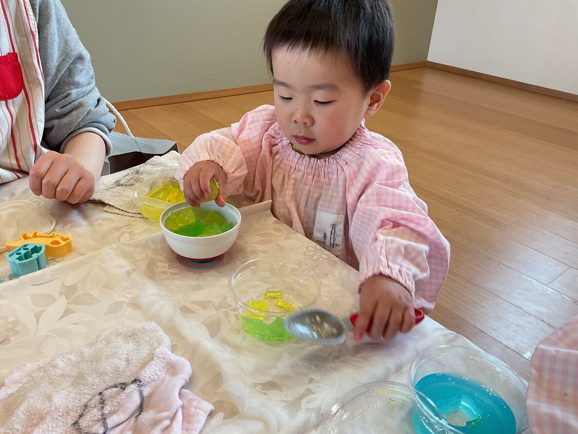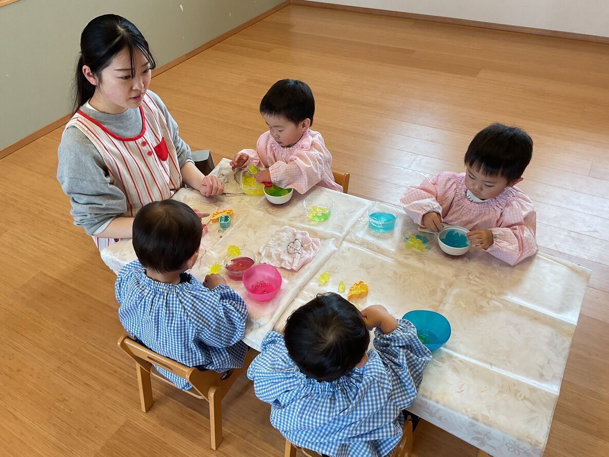 春から“ひよこさん”に進級するお友達は…お絵描きをしたり、カラフルなスライム遊びを楽しみました!春からはさらにいろいろな経験をしていくことでしょう…♫