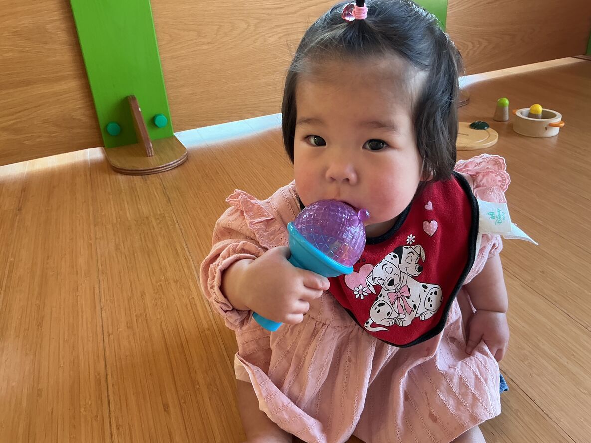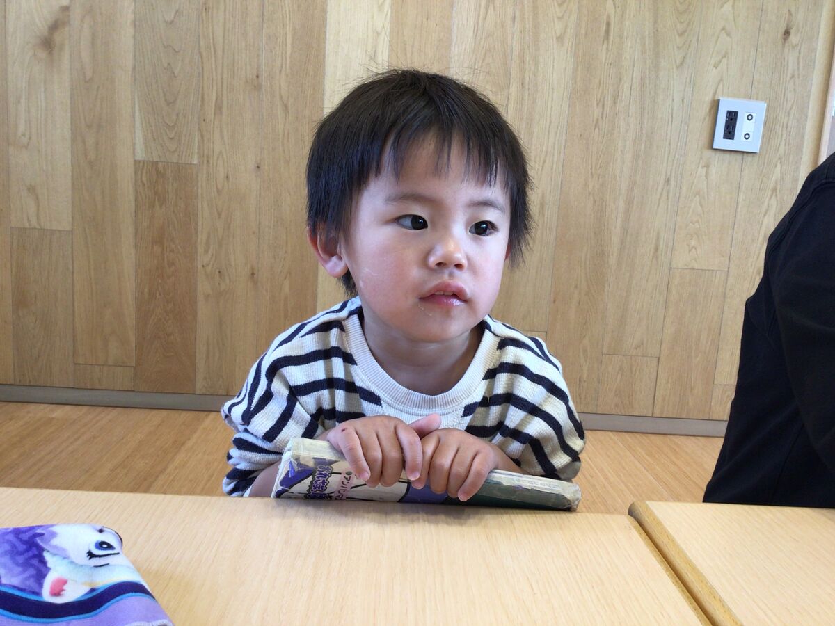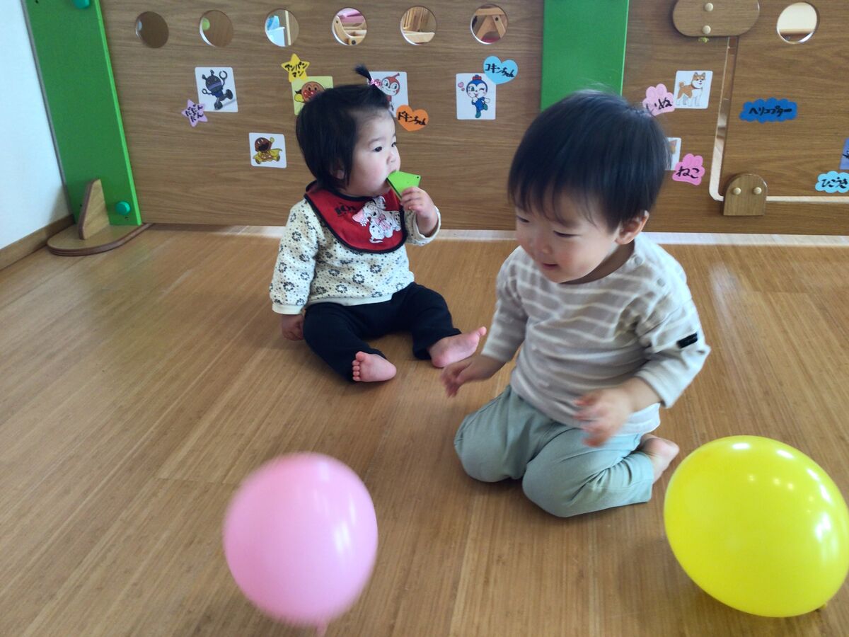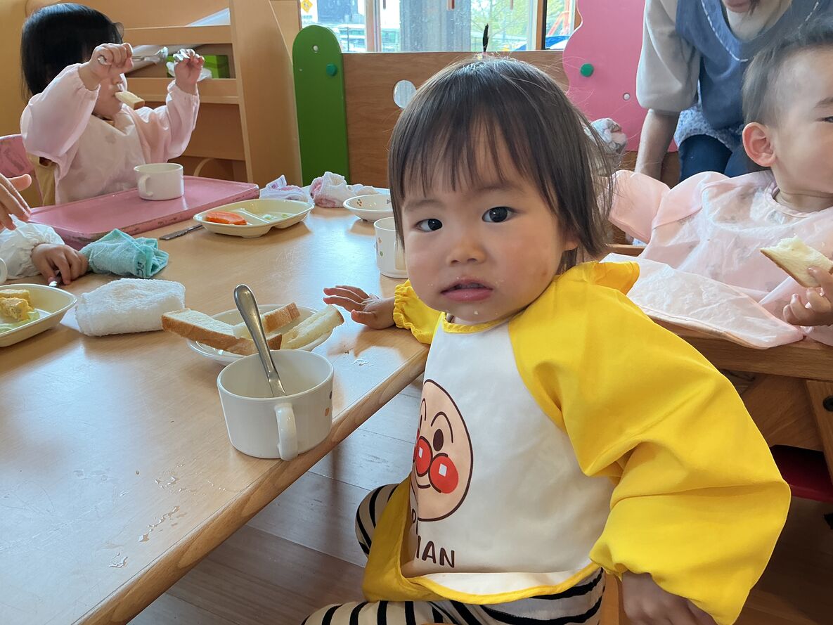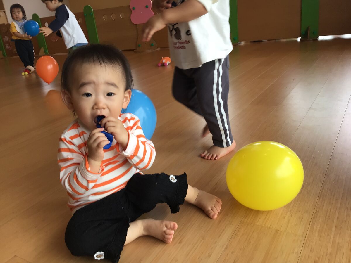 カスタネット組さんは、風船の手触りを楽しんでみたり…今日は初めてのパン給食を頬張ったりと…少しずつ園生活に慣れてきてくれています!!