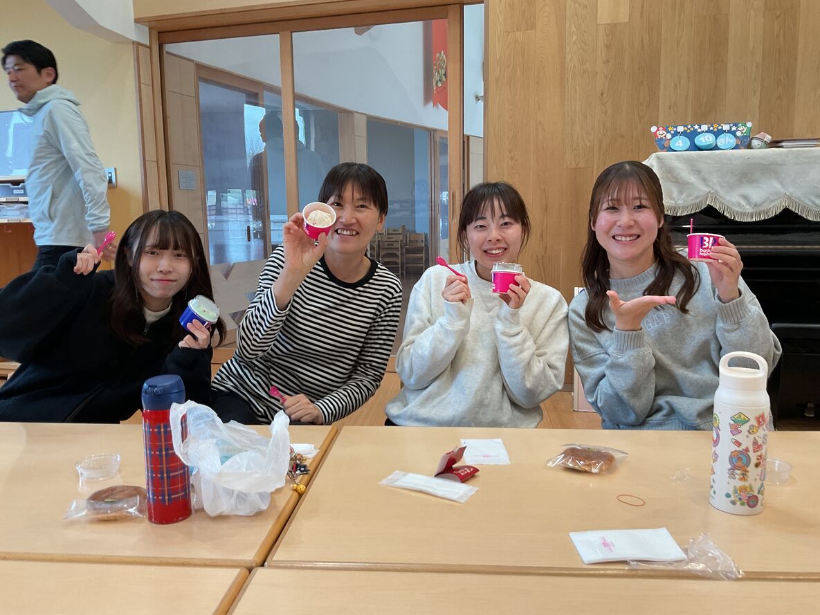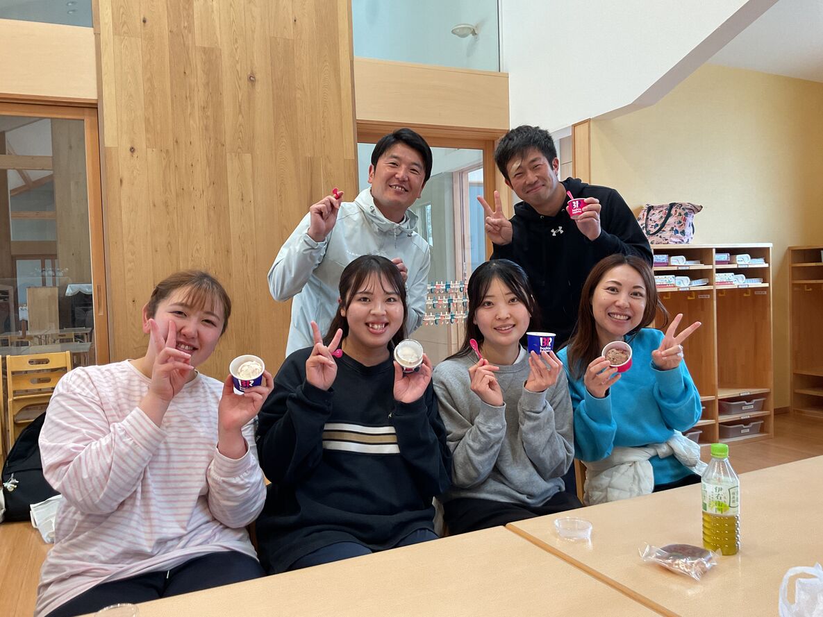 入園式の後、「今年度も頑張りましょう!」と先生達でミーティングをしました!鉄平先生&ひとみ先生から…先生達にハーゲンダッツの差し入れが🍧!