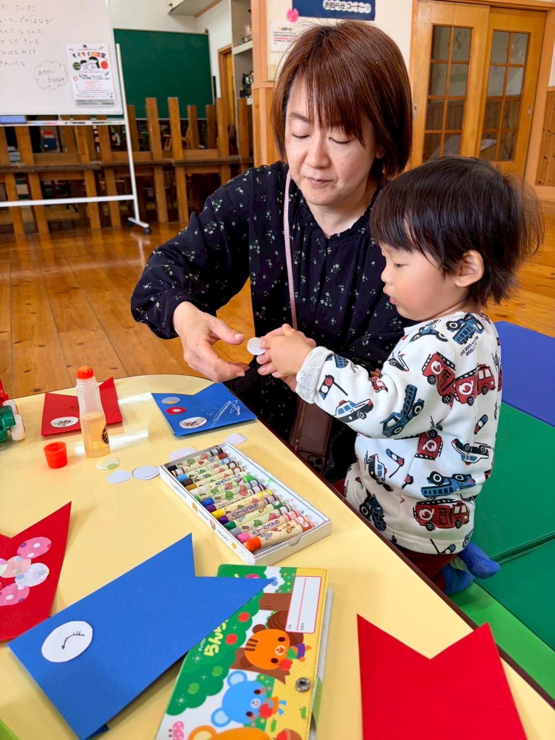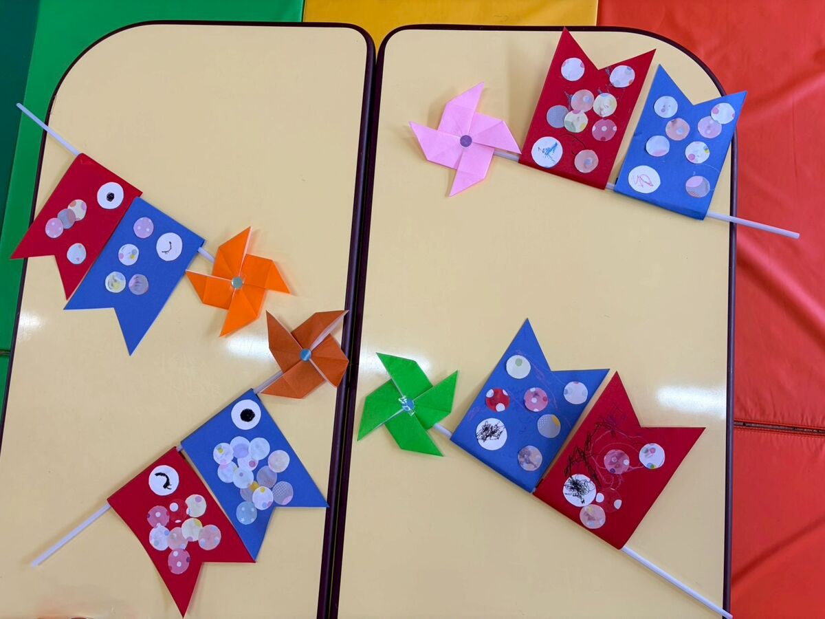 こいのぼりの目👀になる画用紙が小さかったのですが、みんな上手に◯の中に目を描くことが出来ていてビックリしました👏