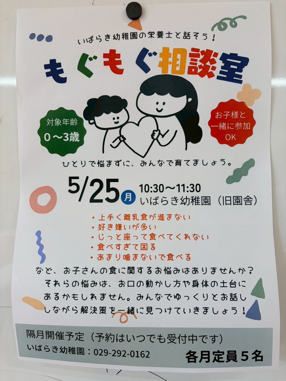 また、5/23(月)に、いばらき幼稚園の栄養士・かおり先生による『もぐもぐ相談室』も開催されます😊お気軽にお問い合わせ下さい✨