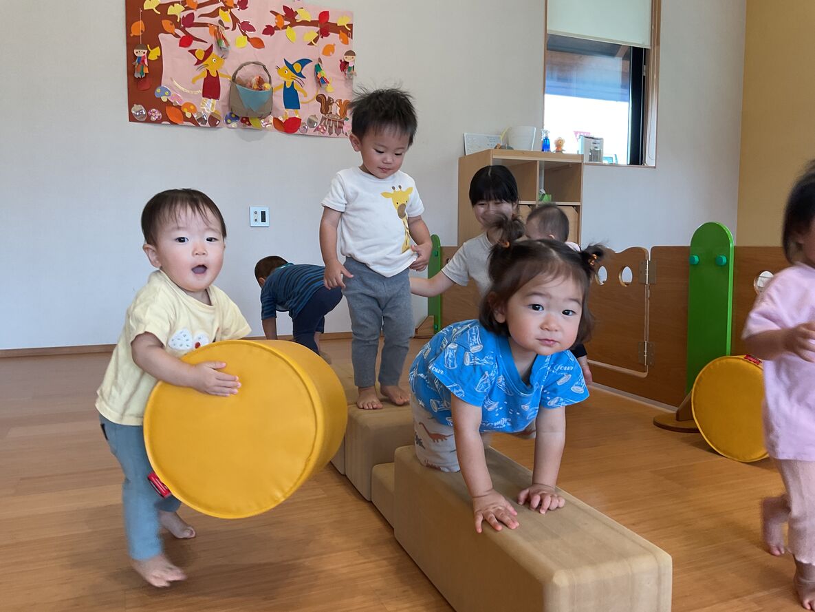 器械運動(マット、跳び箱、鉄棒、平均台)、手具運動(ボール、なわ、チューブ)、ゲーム(鬼ごっこ、手具を使ったゲーム)などで、幼児期に著しい成長を見せる敏捷性、平衡性、協応性といった「調整力」と言われる神経系の成長を促し、「バランスの良い身体と礼儀、約束事」を指導します!